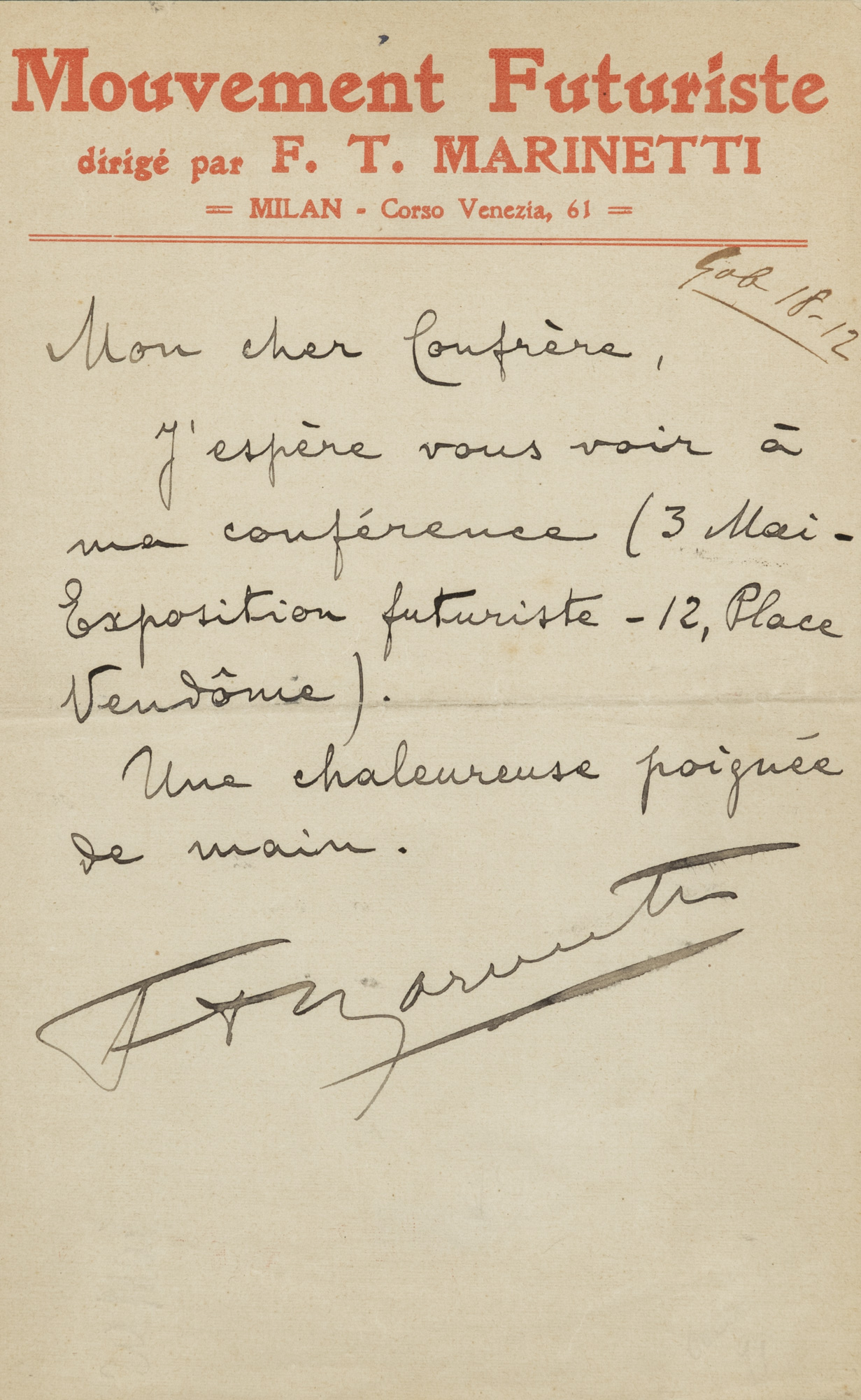 FILIPPO TOMMASO MARINETTI Senza titolo, 1912