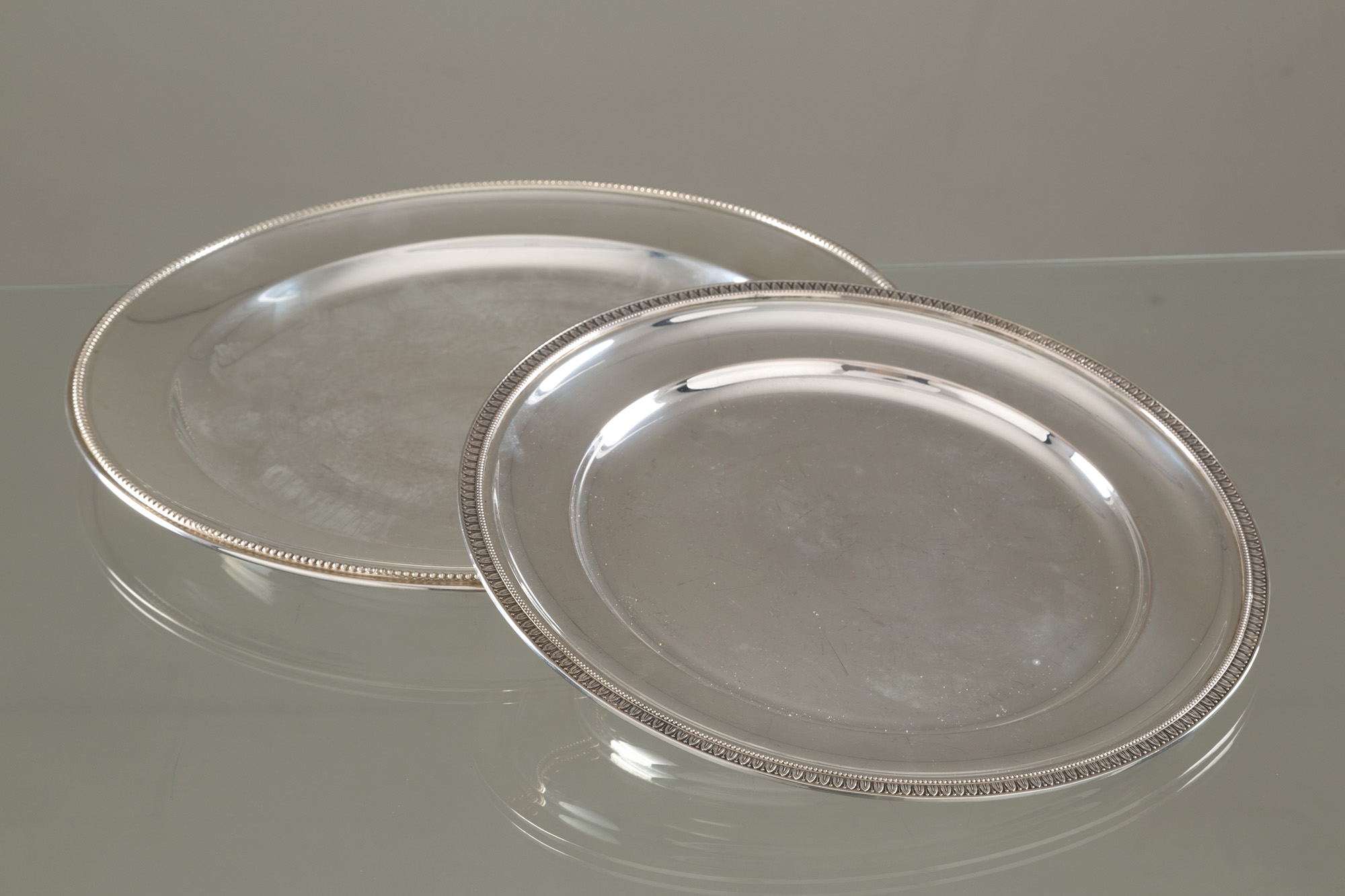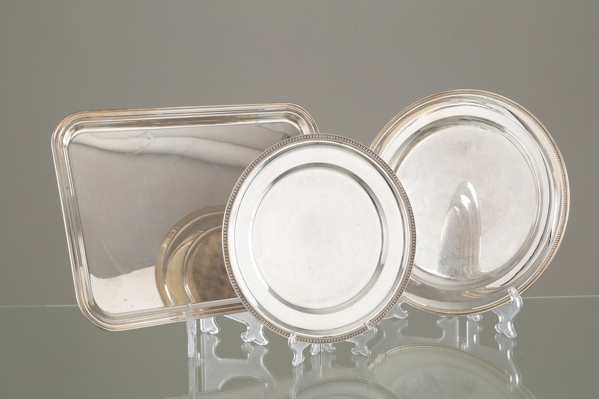 Lotto 104 | Two 800 silver plates and one tray, gr. 1800 ca.