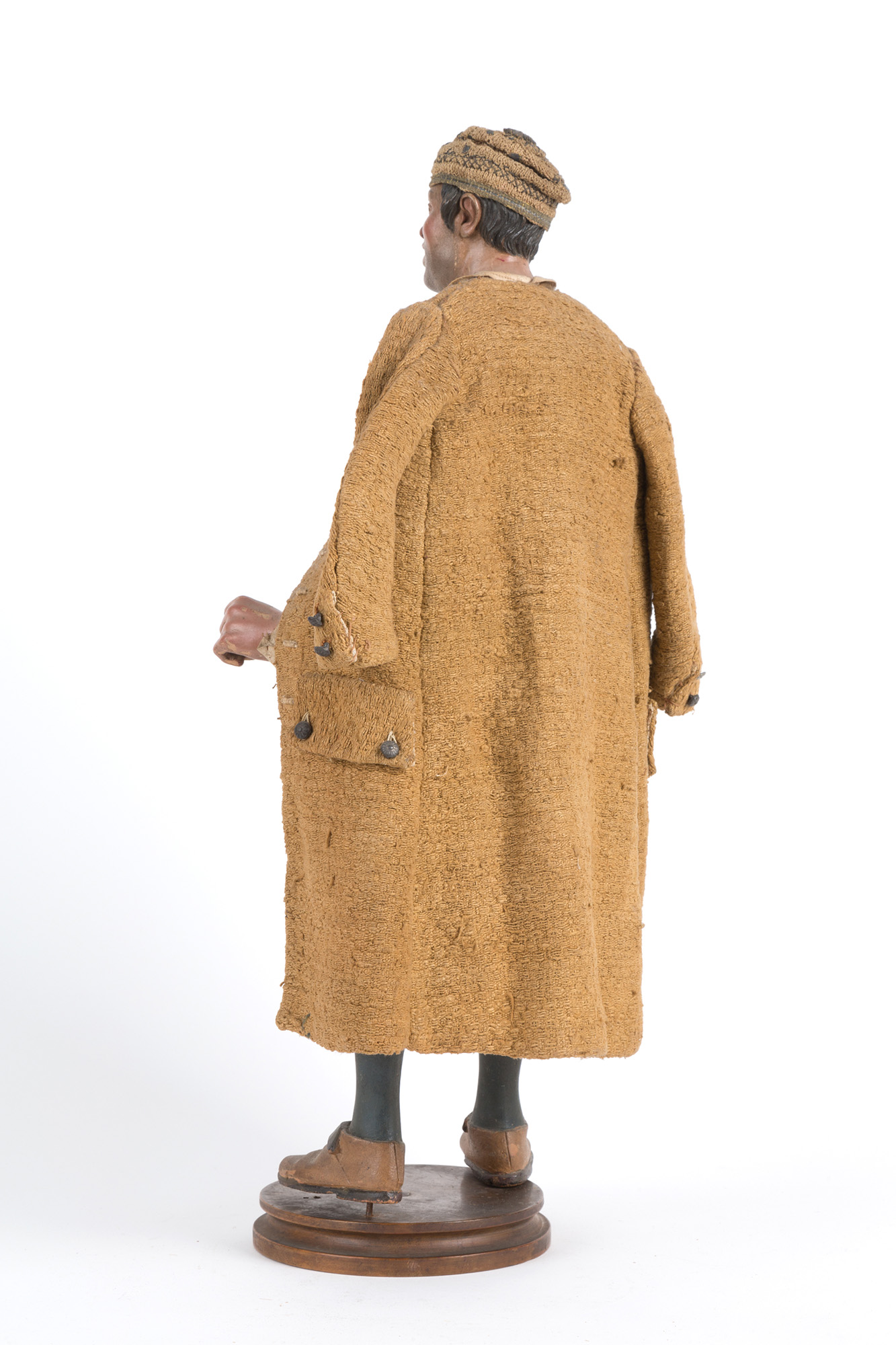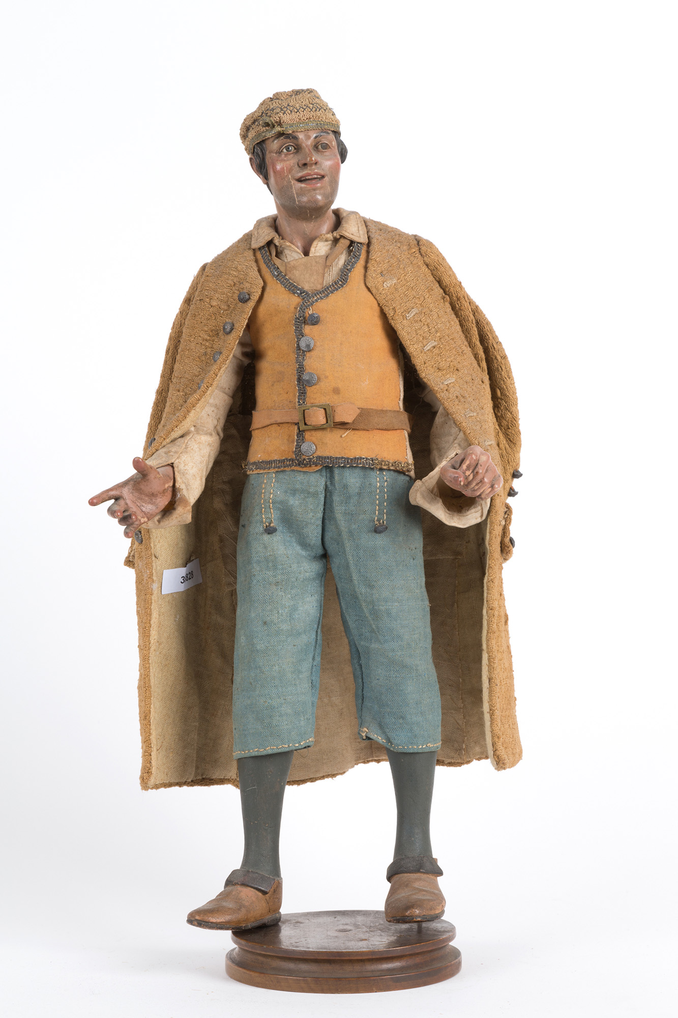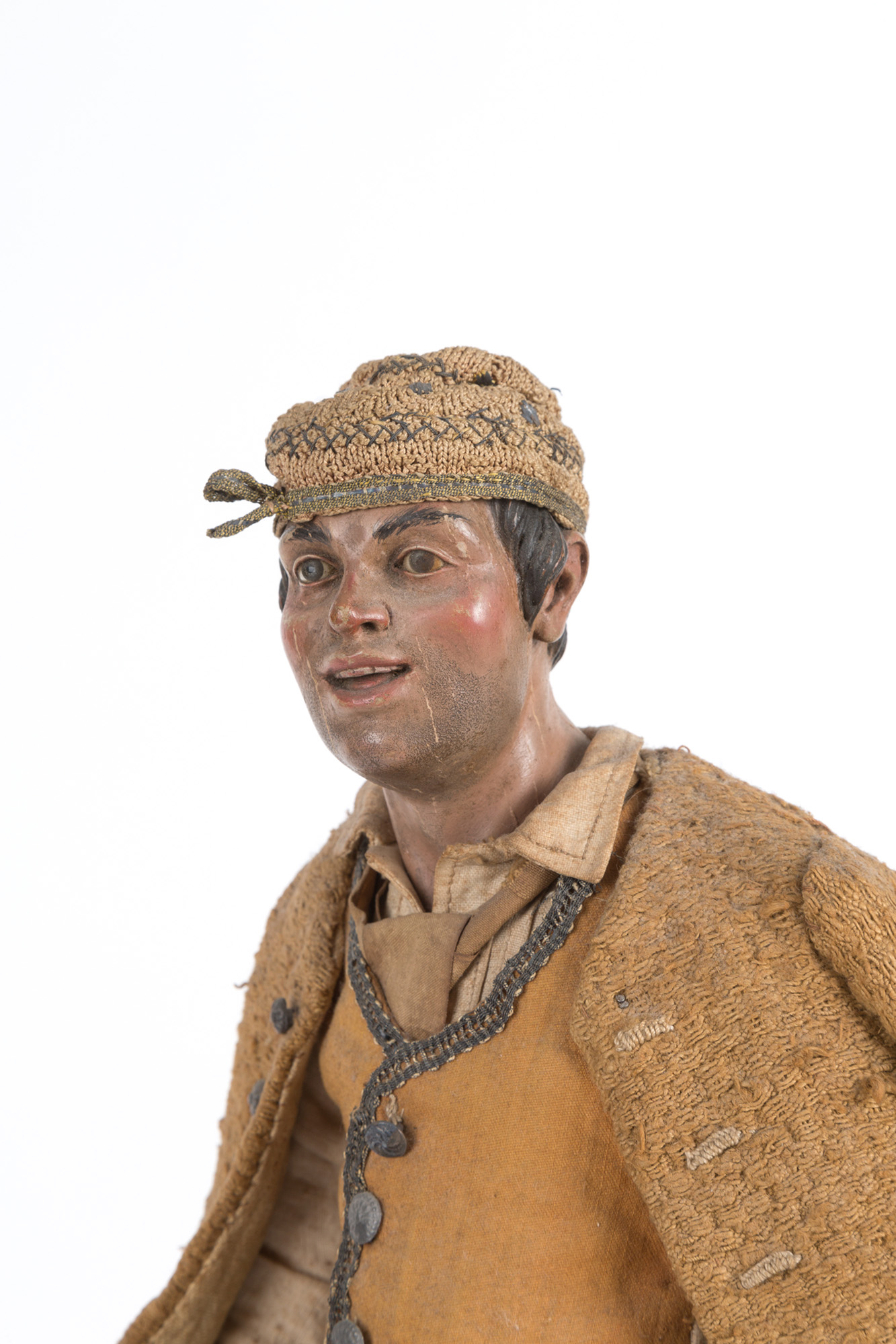 MATTEO BOTTIGLIERI (Castiglione del Genovesi, 1684-1757). Pastore in terracotta, legno, paglia e vestiti originali. Napoli. Mis. Alt. cm. 43 ca.