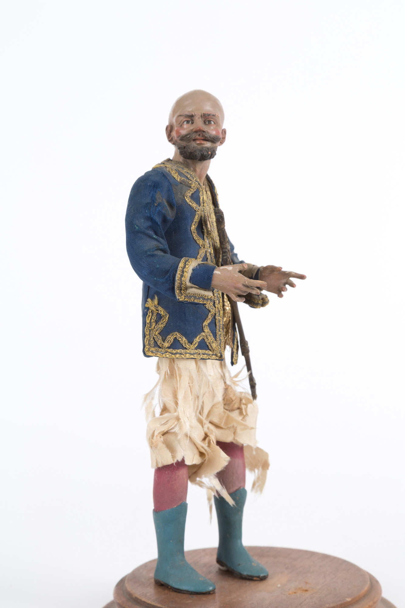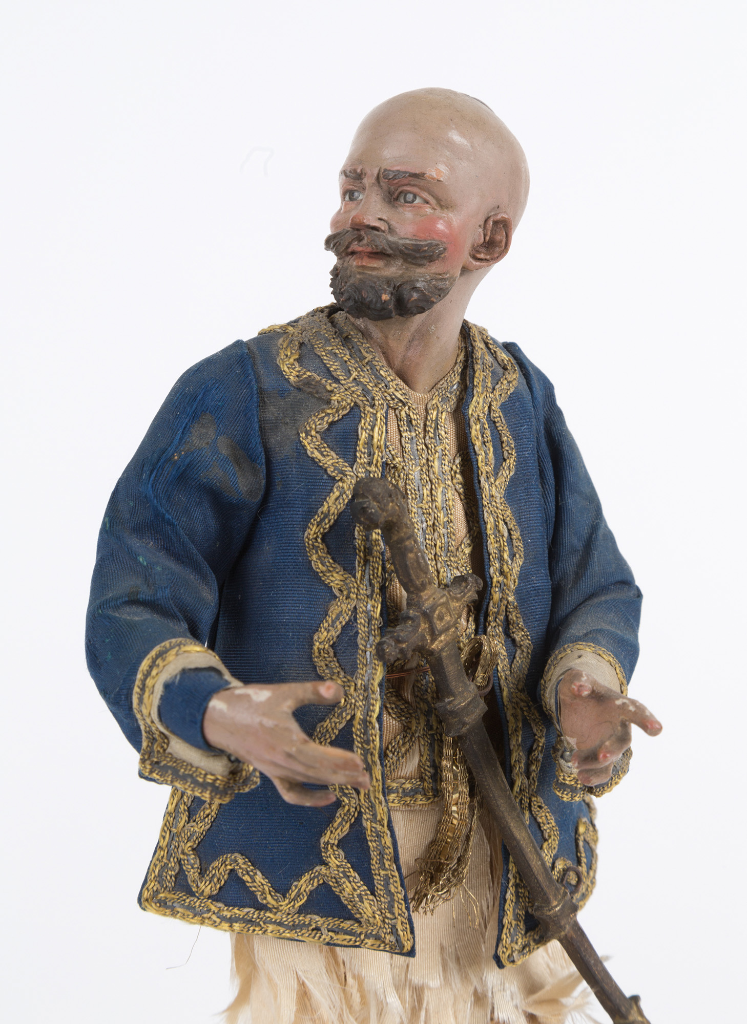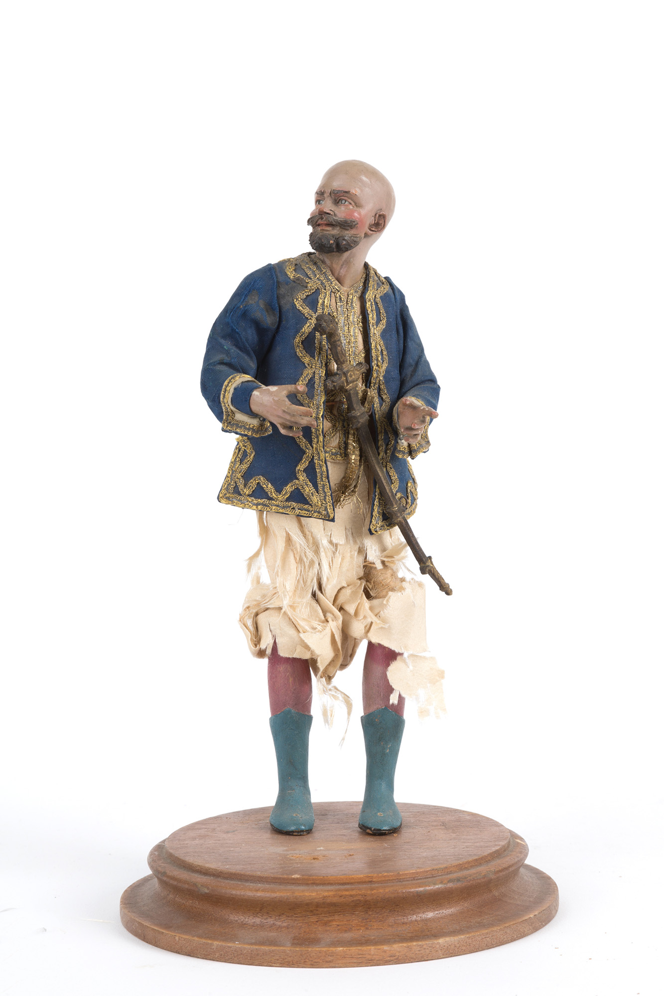 TOMMASO SCHETTINO. Spadaccino in terracotta, legno, paglia e vestiti originali. Napoli. XVIII secolo. Difetti. Mis. Alt. cm. 20 ca.