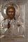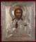 Icona su tavola raff. ''CRISTO'' con riza in argento. Russia. XIX secolo. In cornice. Mis. Lung. cm. 31 Alt. cm. 36 ca.