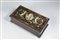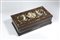 Scatola in legno ebanizzato con intarsi in avorio. XIX secolo. Lievi difetti. Mis. Lung. cm. 34.5 Alt. cm. 11 Prof. cm. 18 ca.