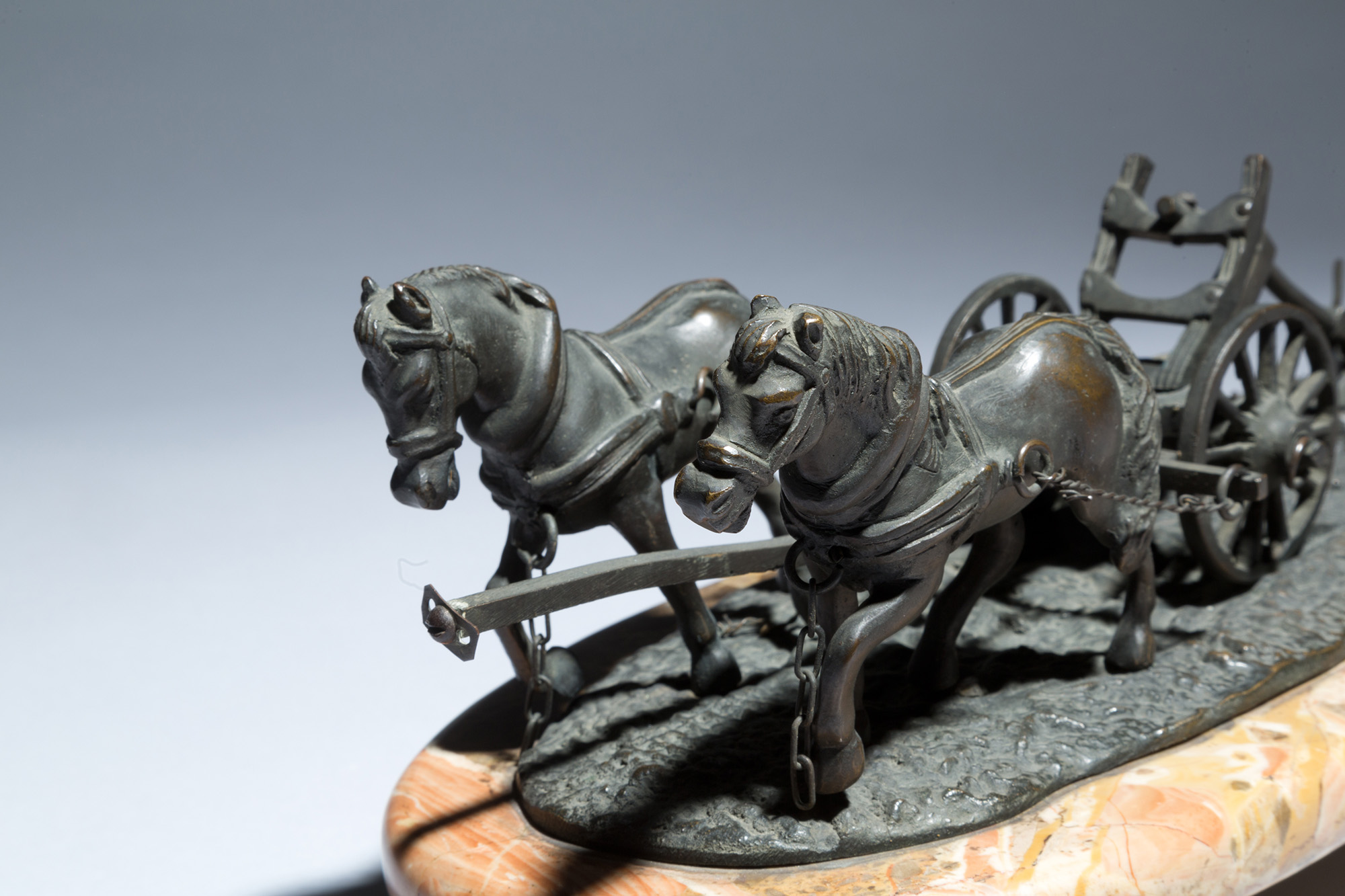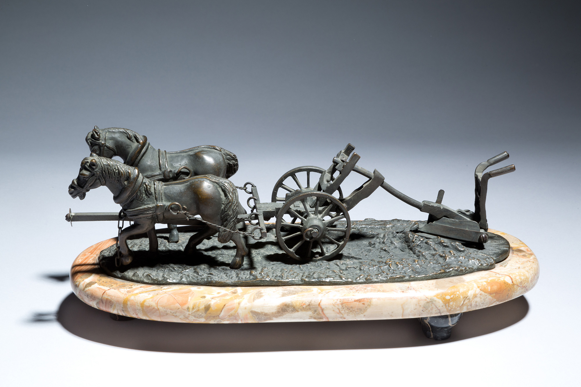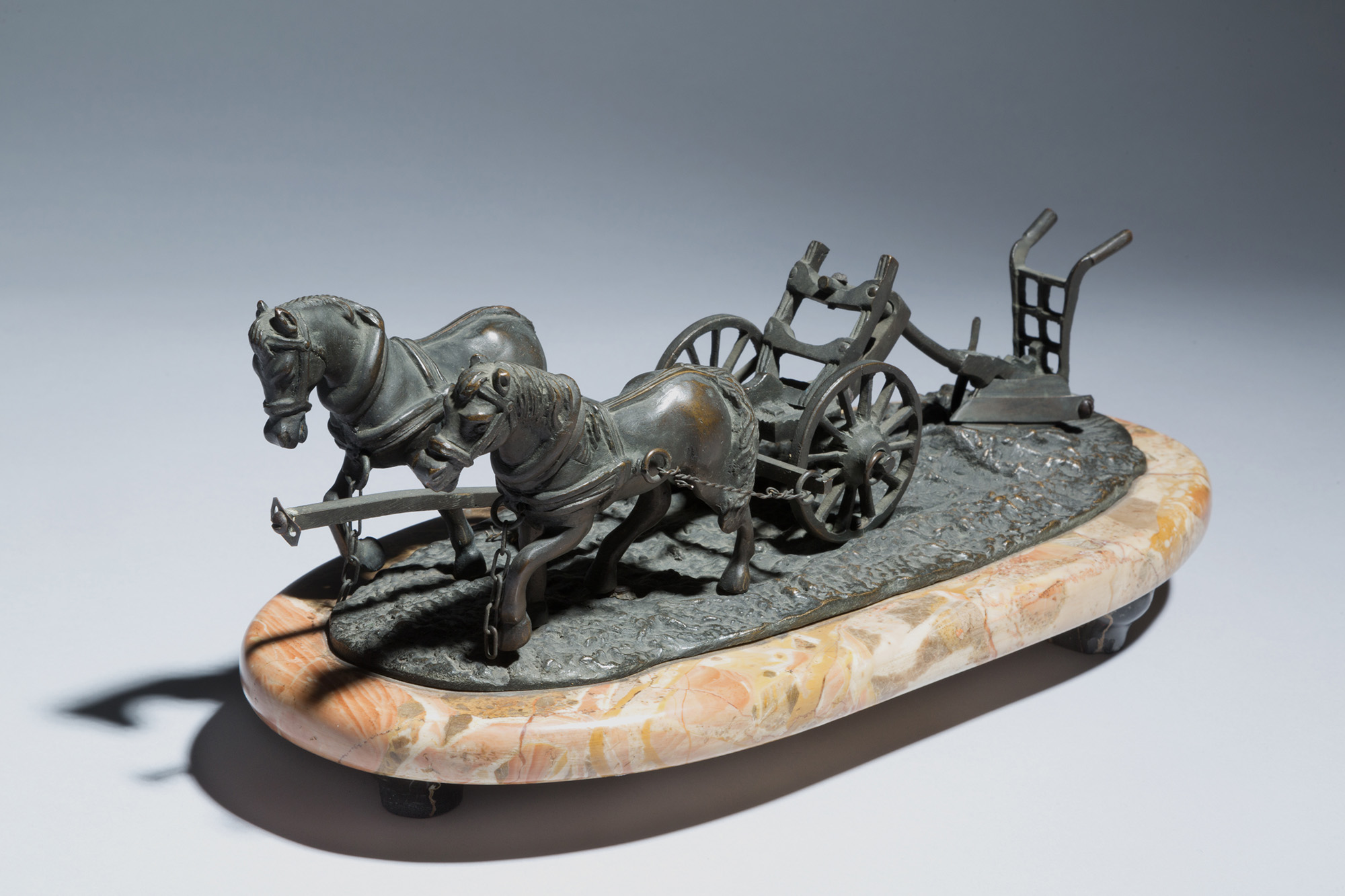 Bronze sculpture 'TWO HORSES WITH A PLOW'. 20th c