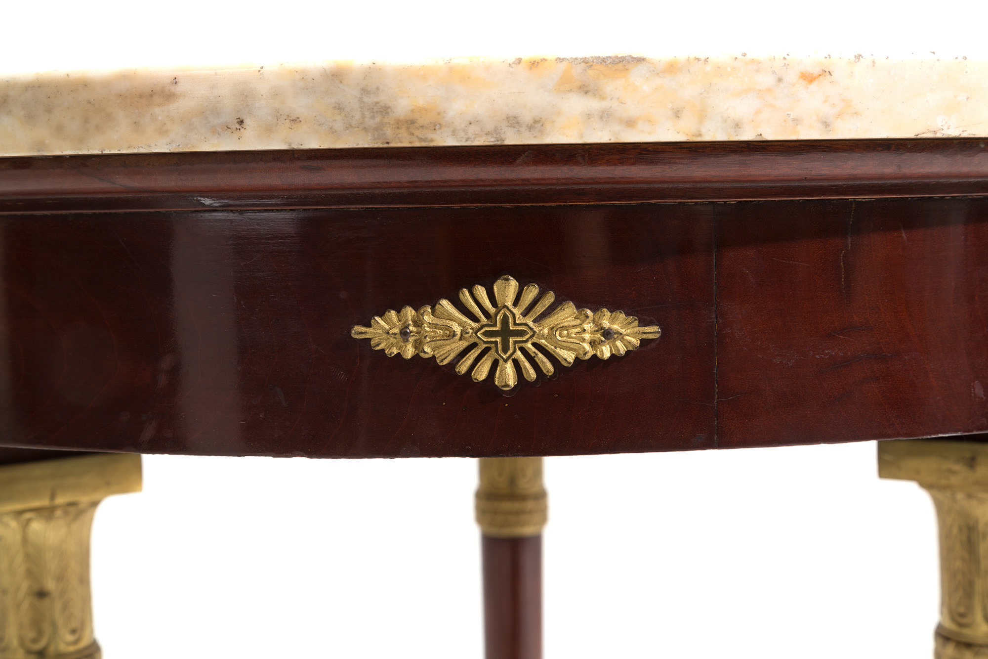 Round wooden table with marble top. Empire period