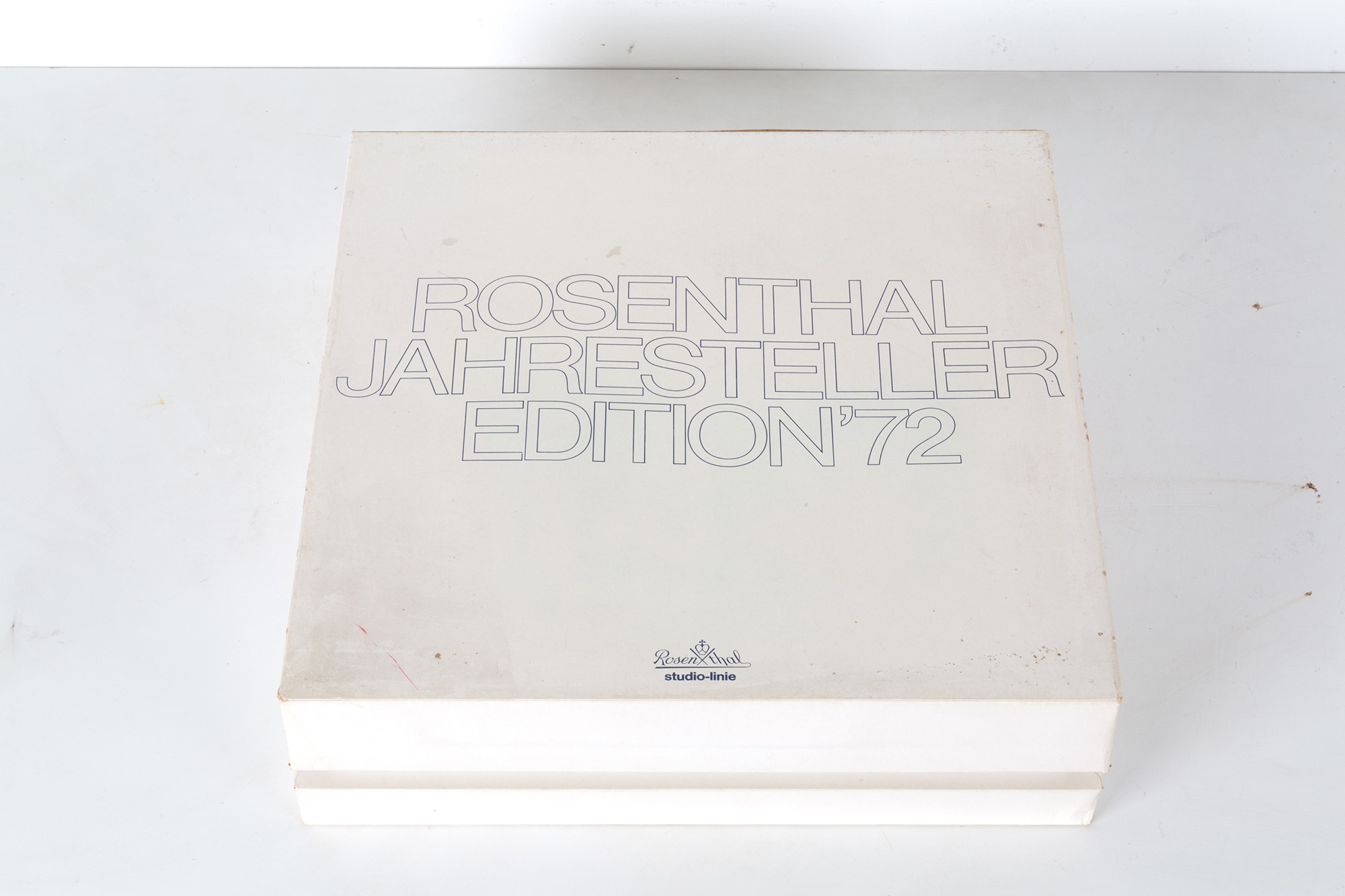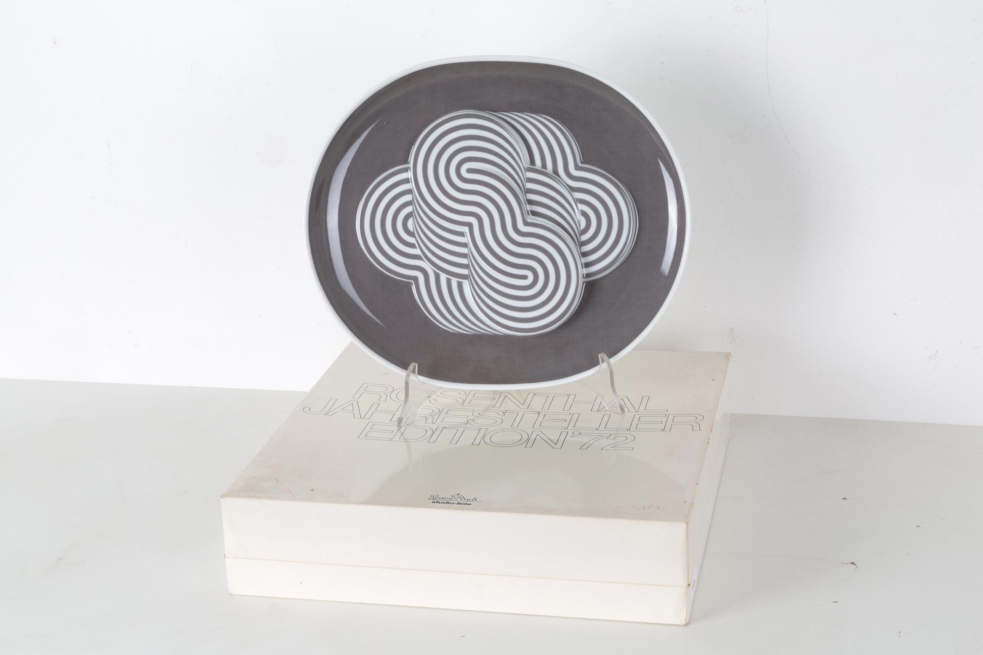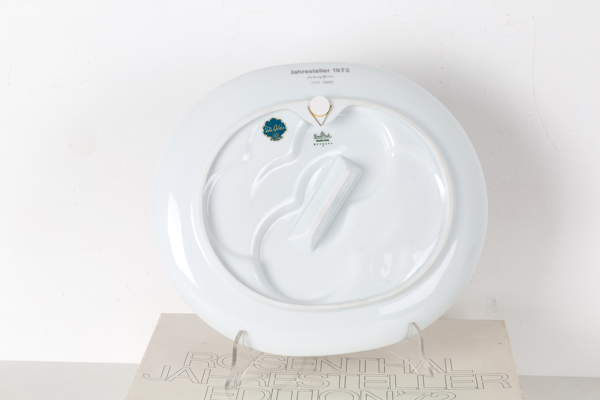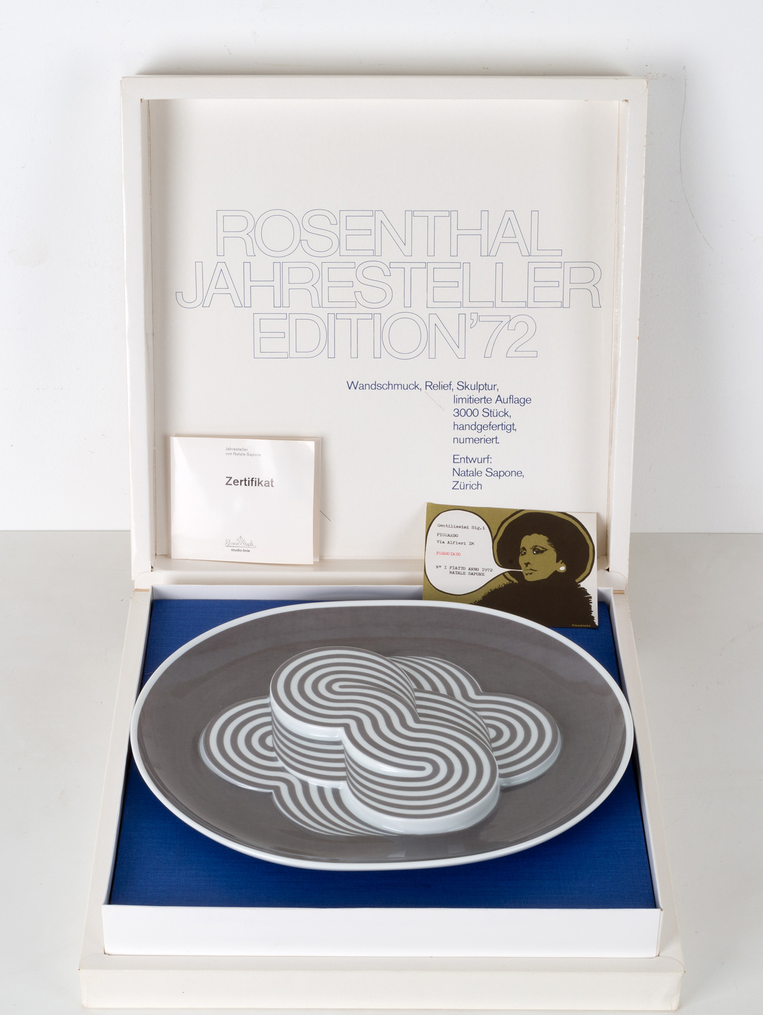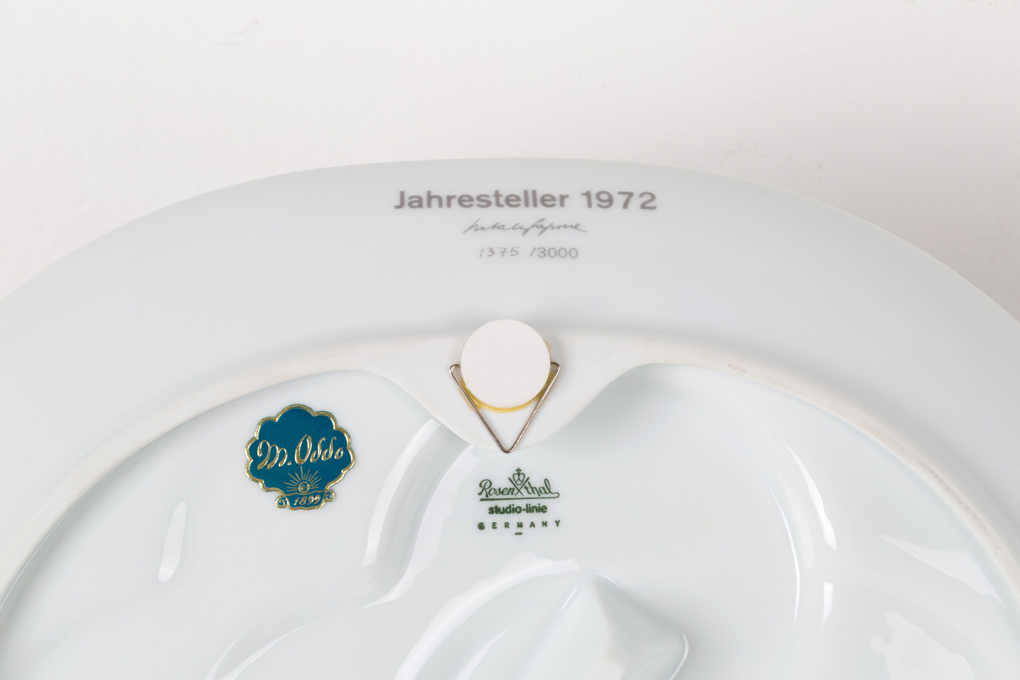 NATALE SAPONE (Reggio Calabria, 1921 - Frauenfeld, 2002) per ROSENTHAL JAHRESTELLER. Piatto in porcellana. Ed. 1972. Esemplare 1375/3000. Mis. Lung. cm. 30.3 Prof. cm. 35.5 ca.