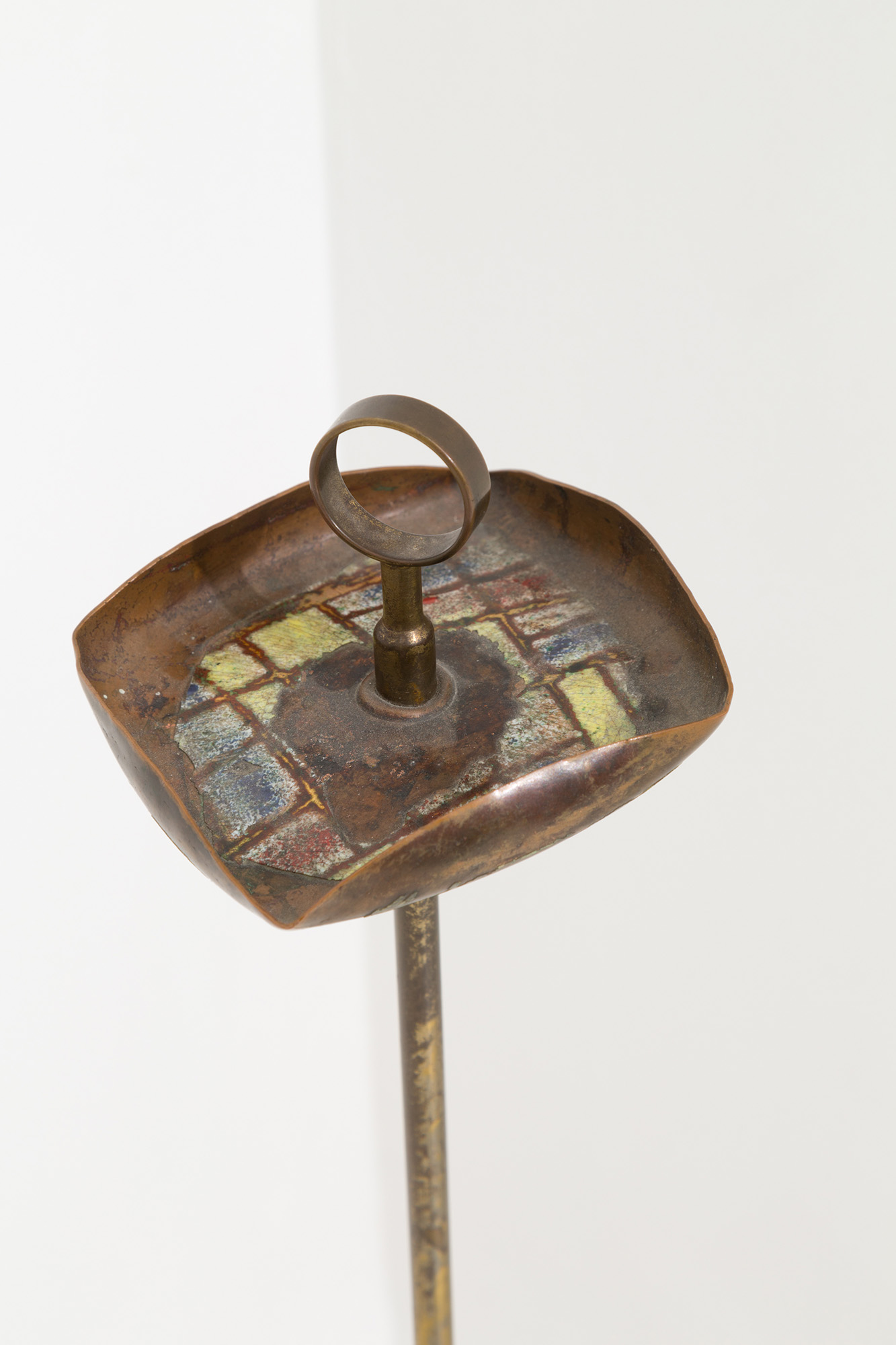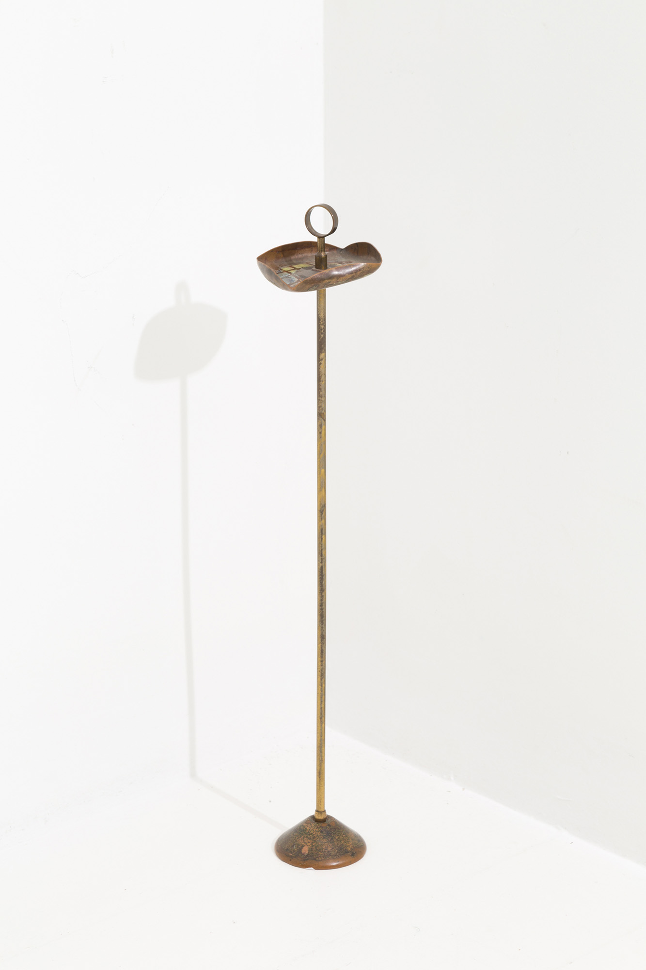 Posacenere da terra in bronzo e smalti. Manifattura italiana. XX secolo. Mis. Lung. cm. 12 Alt. cm. 71 Prof. cm. 12 ca.