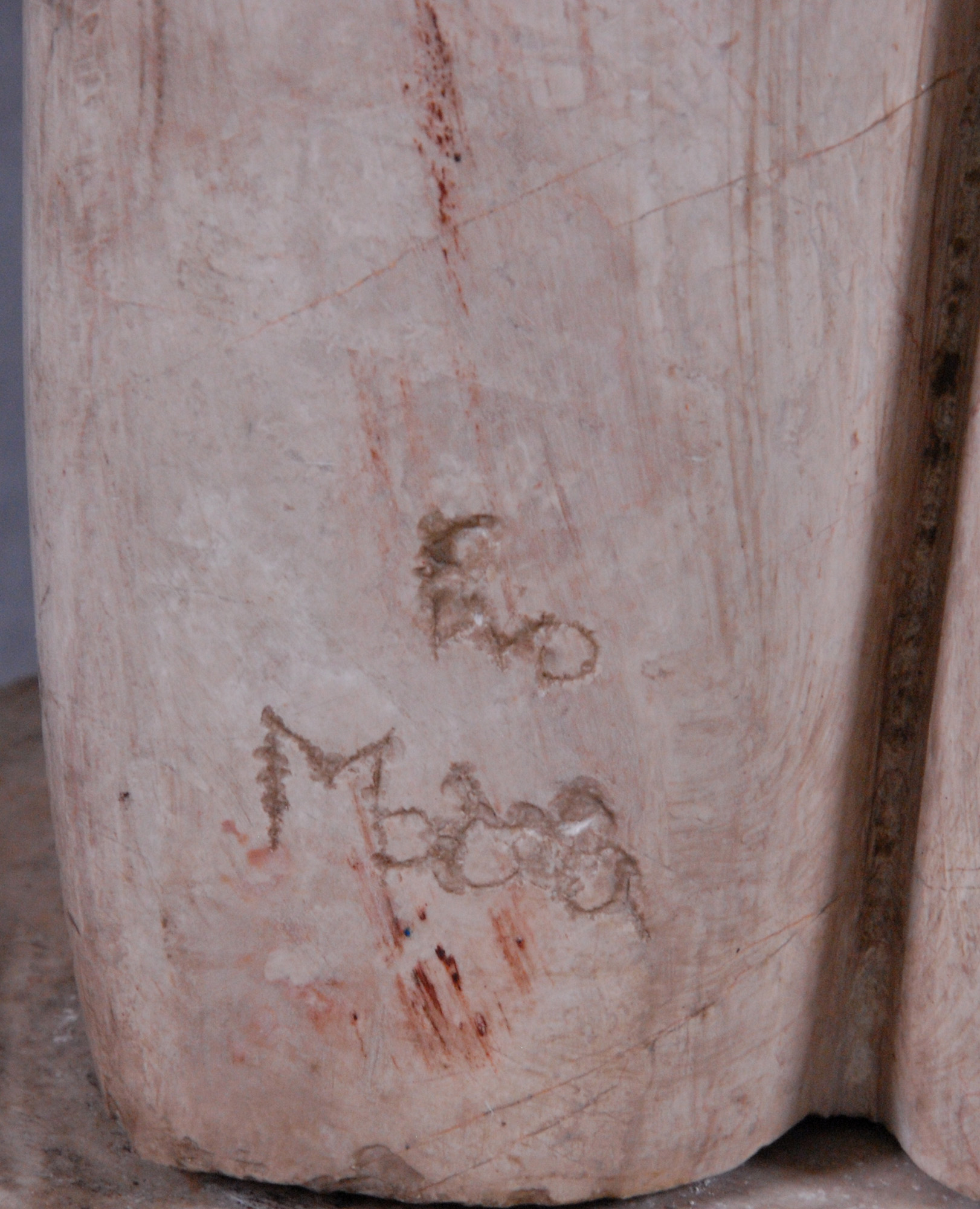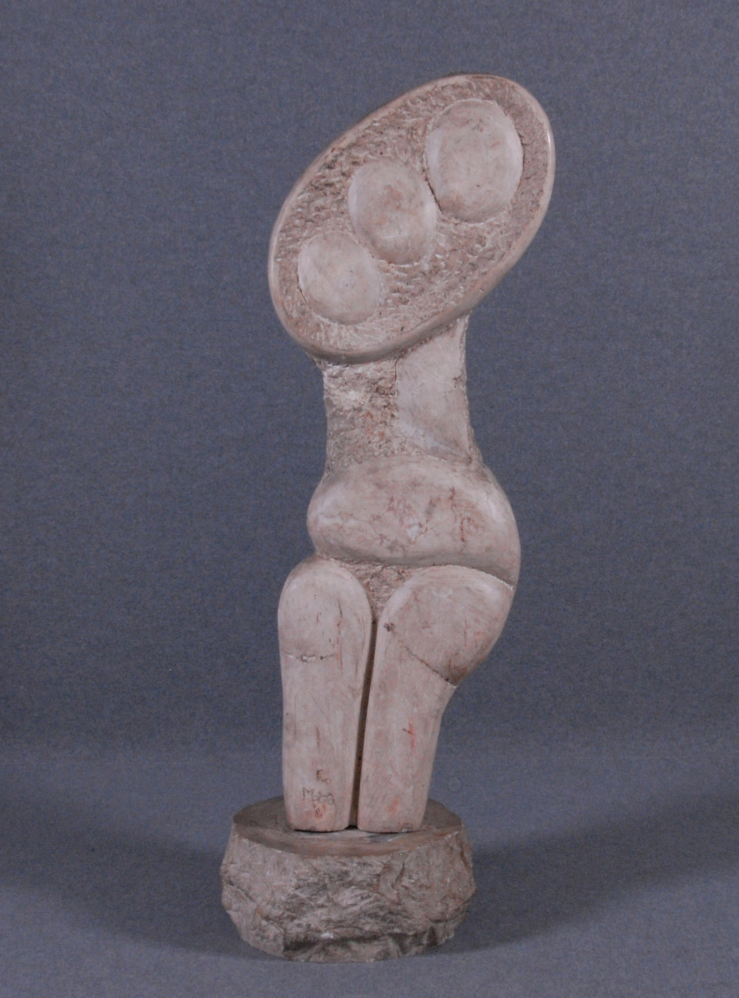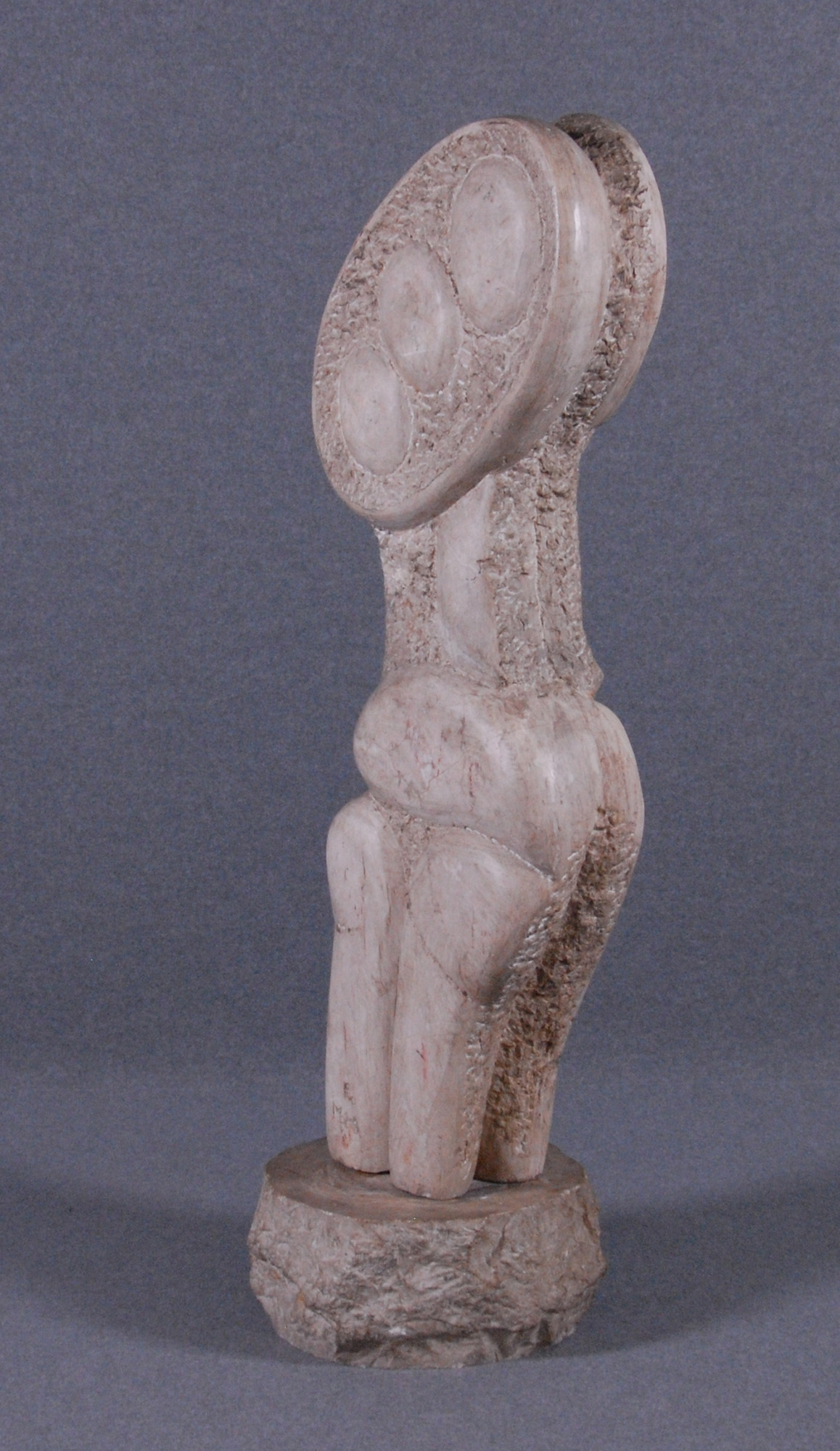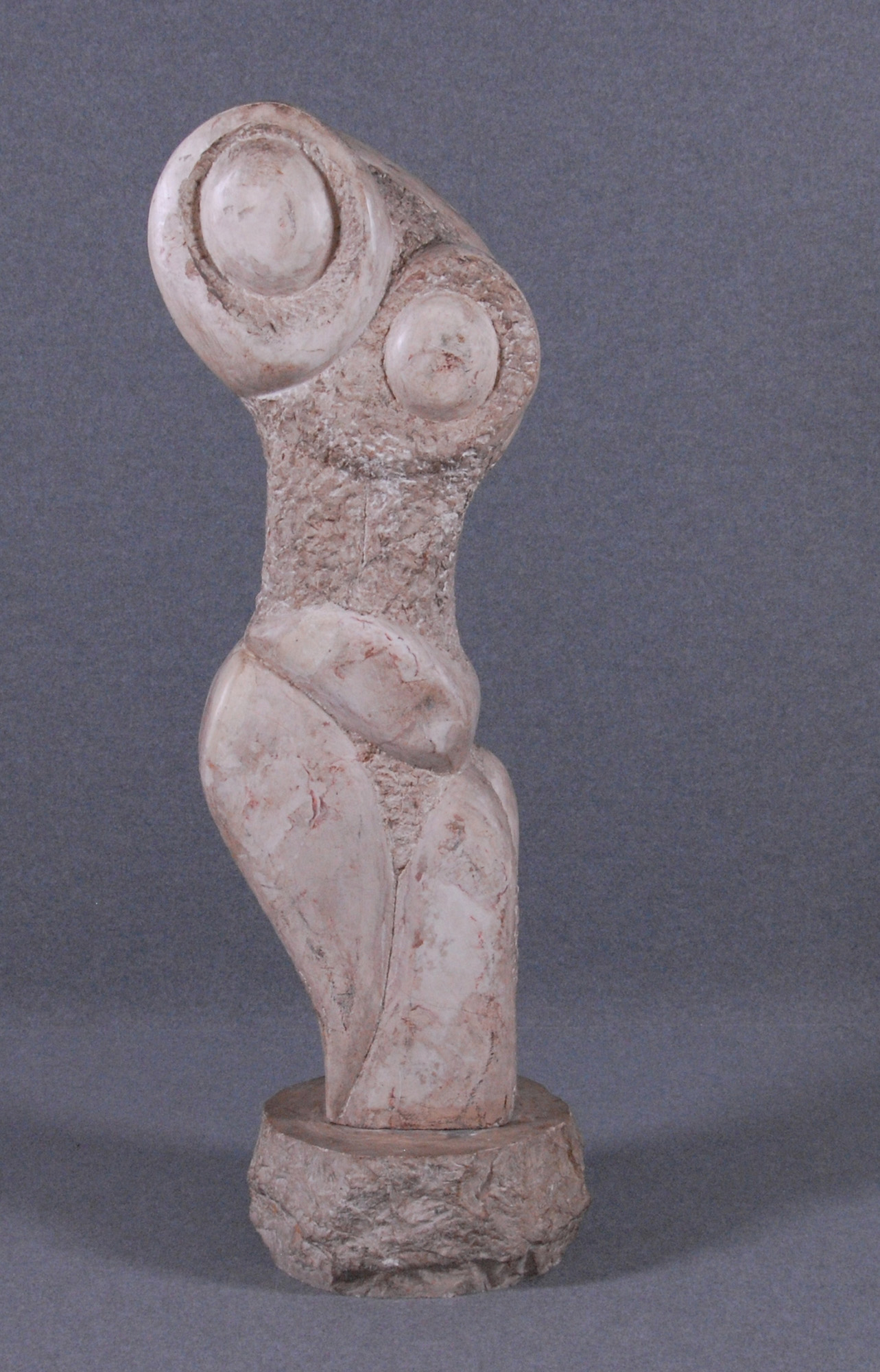 Scultura in pietra raff. ''SOGGETTO INFORMALE''. Firmata PINO MAJORCA in basso a sinistra. Base in pietra. XX secolo. Mis. alt. cm. 107 con base. Mis. Lung. cm. 34 Alt. cm. 93 ca.