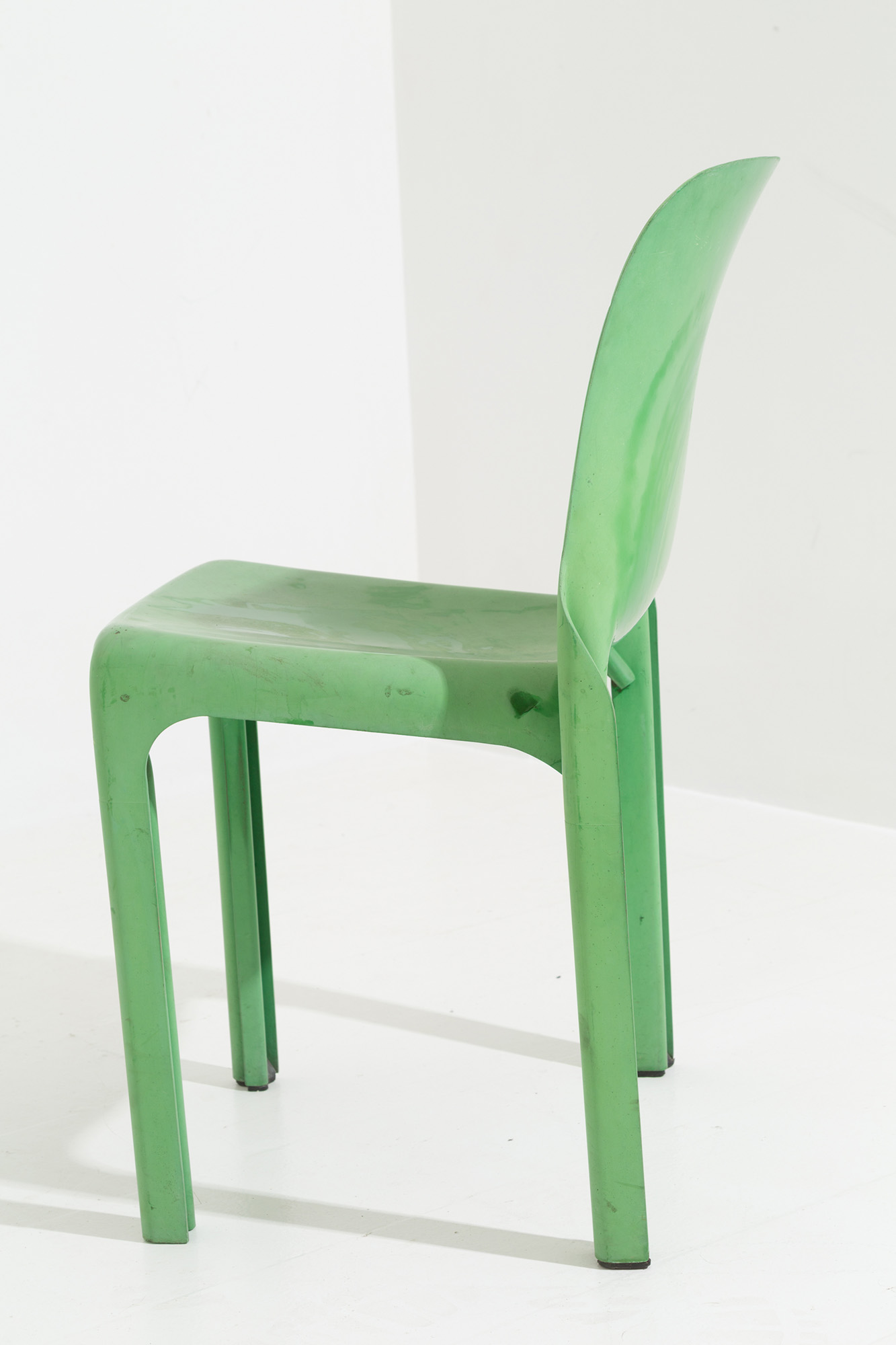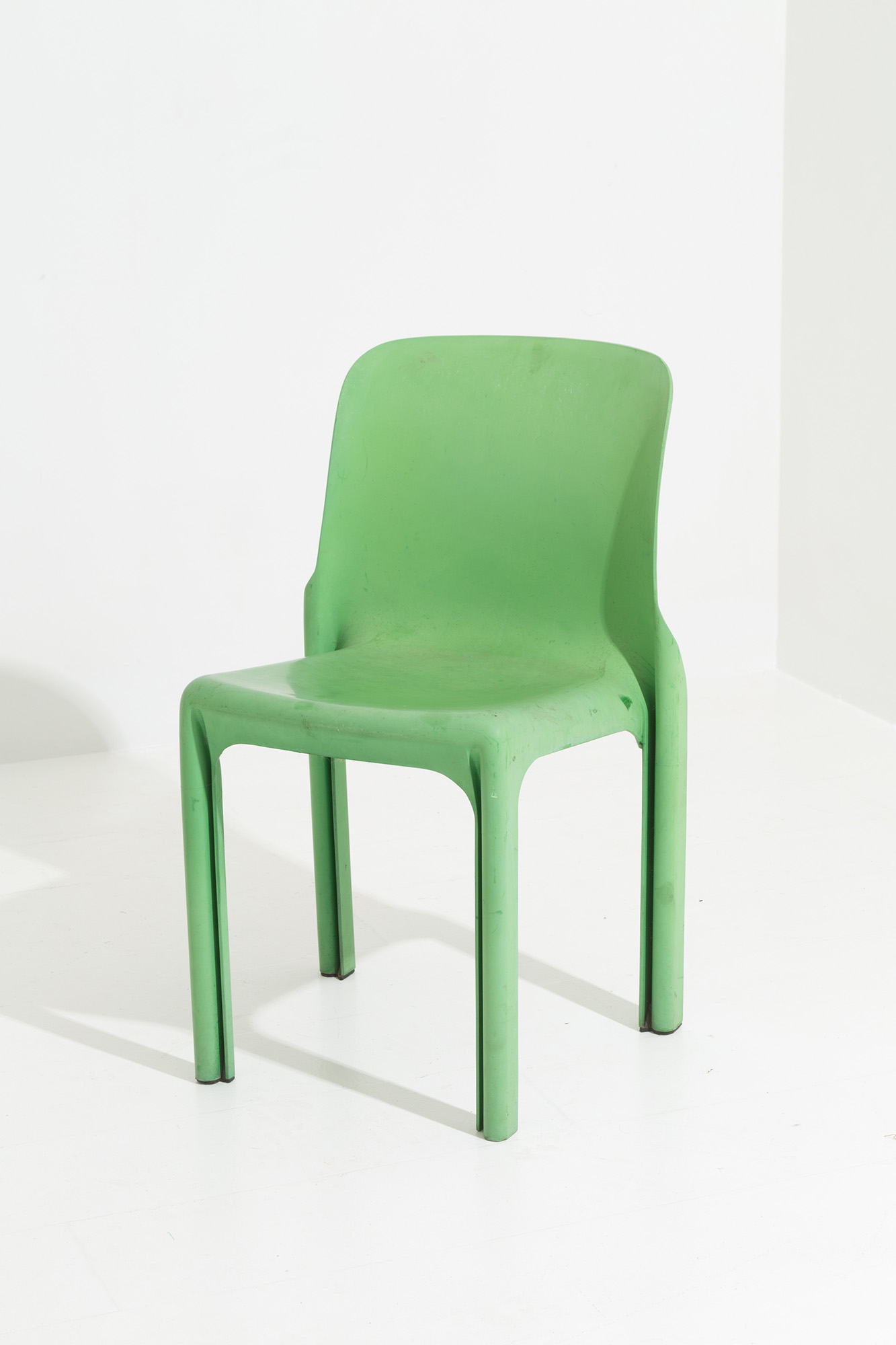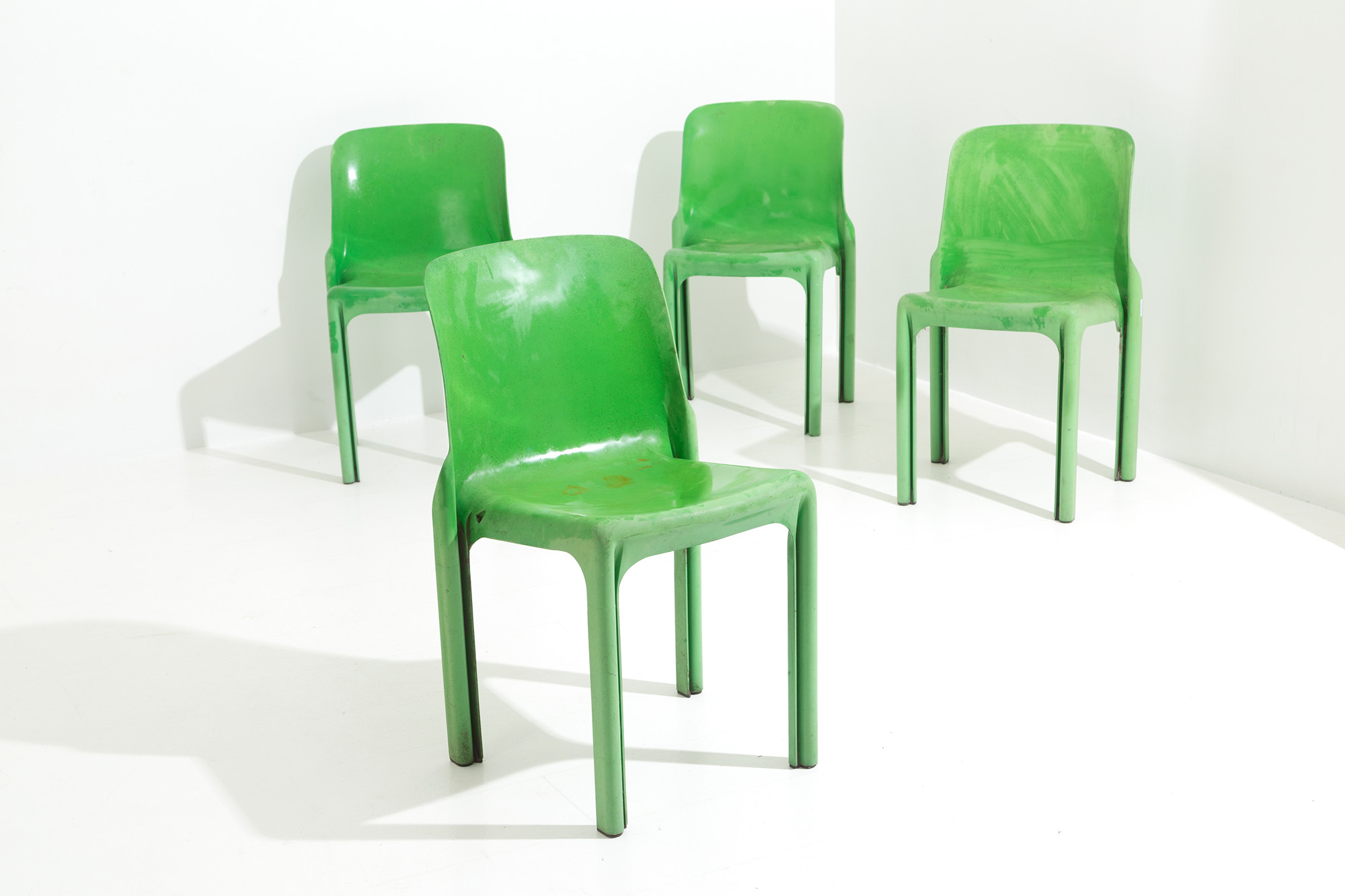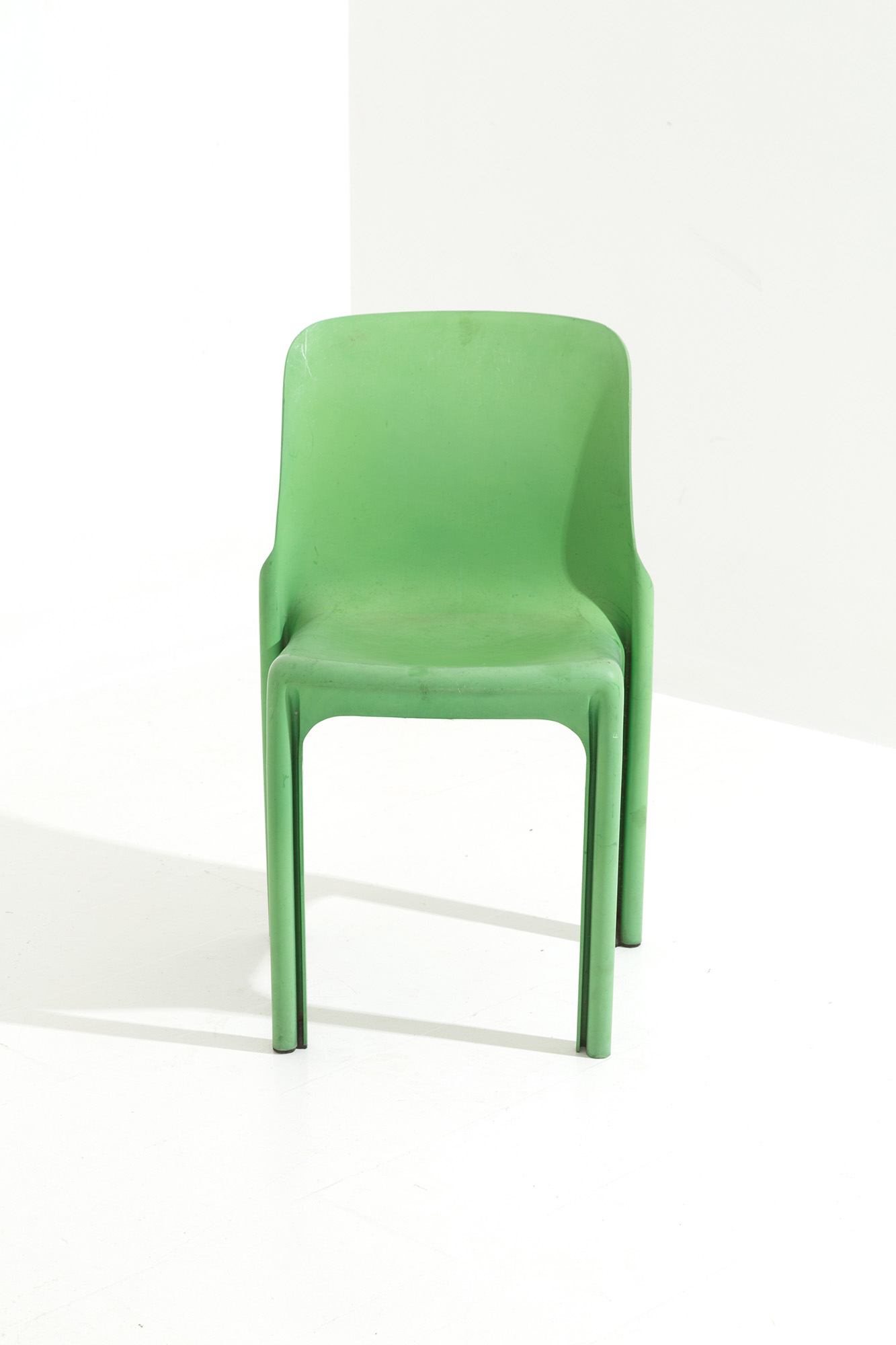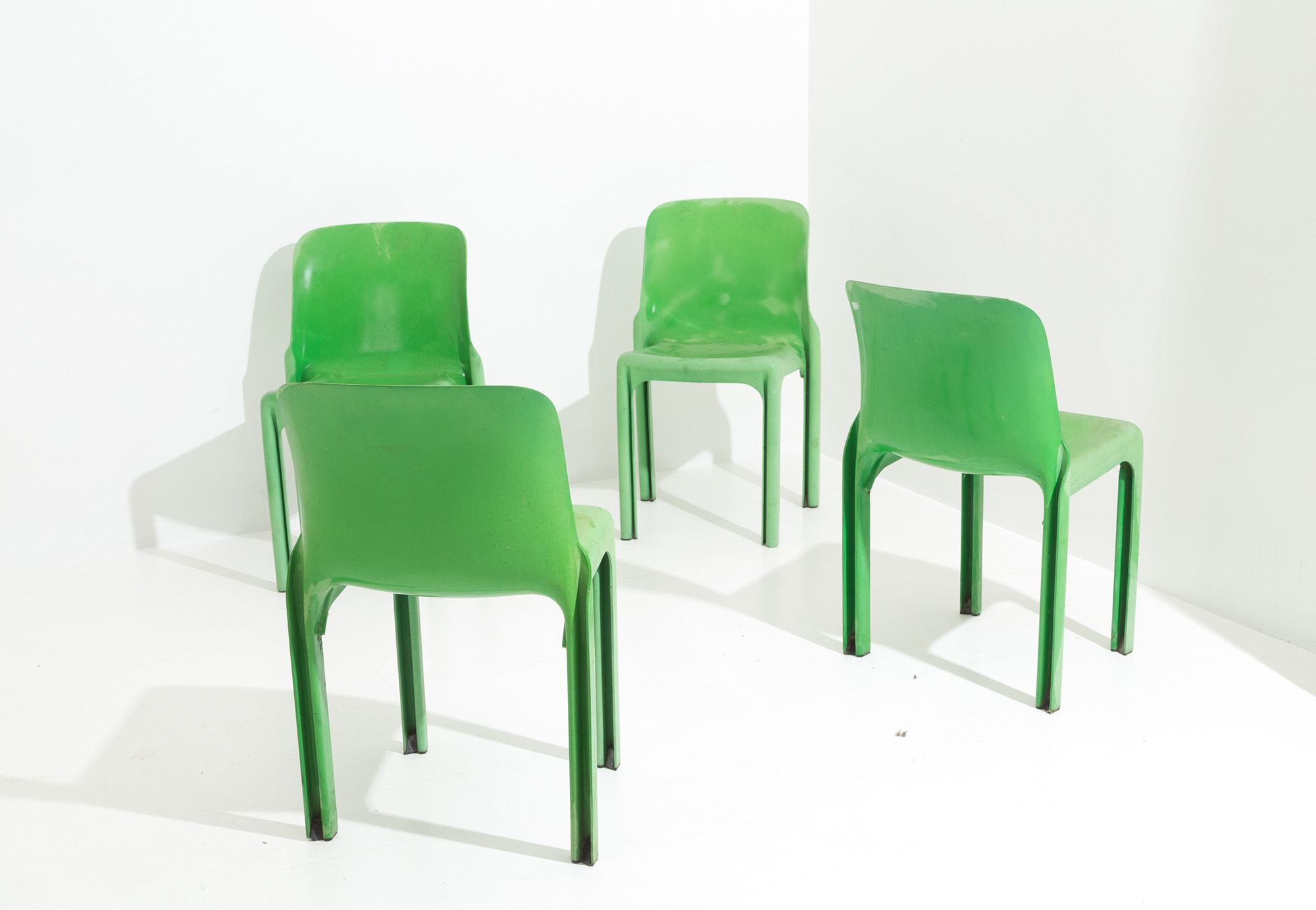 VICO MAGISTRETTI (Milano, 1920-2006). Quattro sedie Selene in materiale plastico verde. Anni '60-'70. Mis. Lung. cm. 45 Alt. cm. 75 Prof. cm. 45 ca.