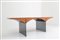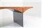 Scrivania in legno doussiè e lastre di vetro temperato fumè. Manifattura italiana. Anni '70. Mis. Lung. cm. 220.5 Alt. cm. 75 Prof. cm. 80.5 ca.