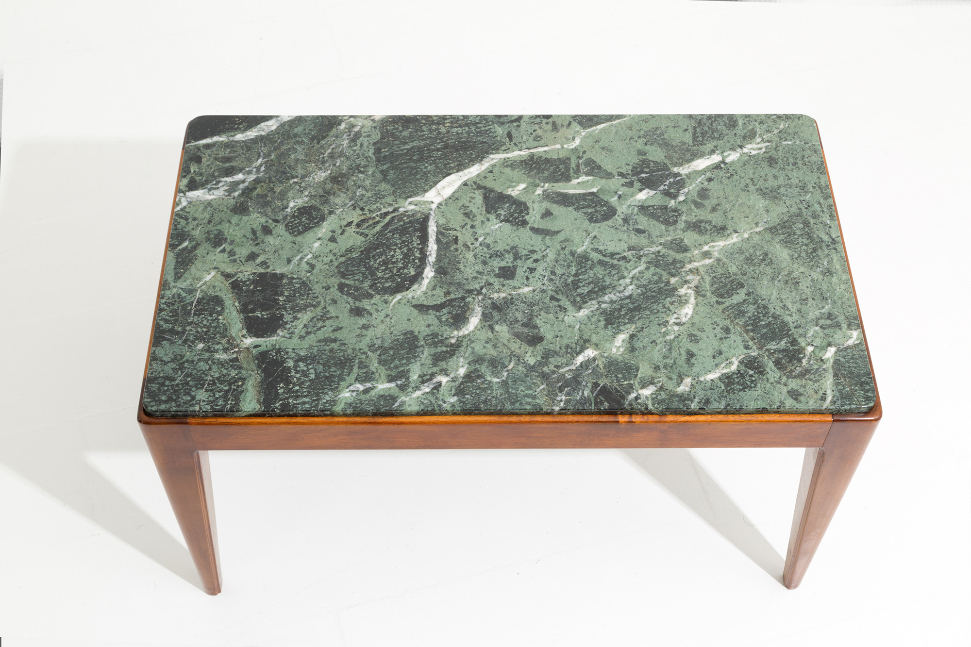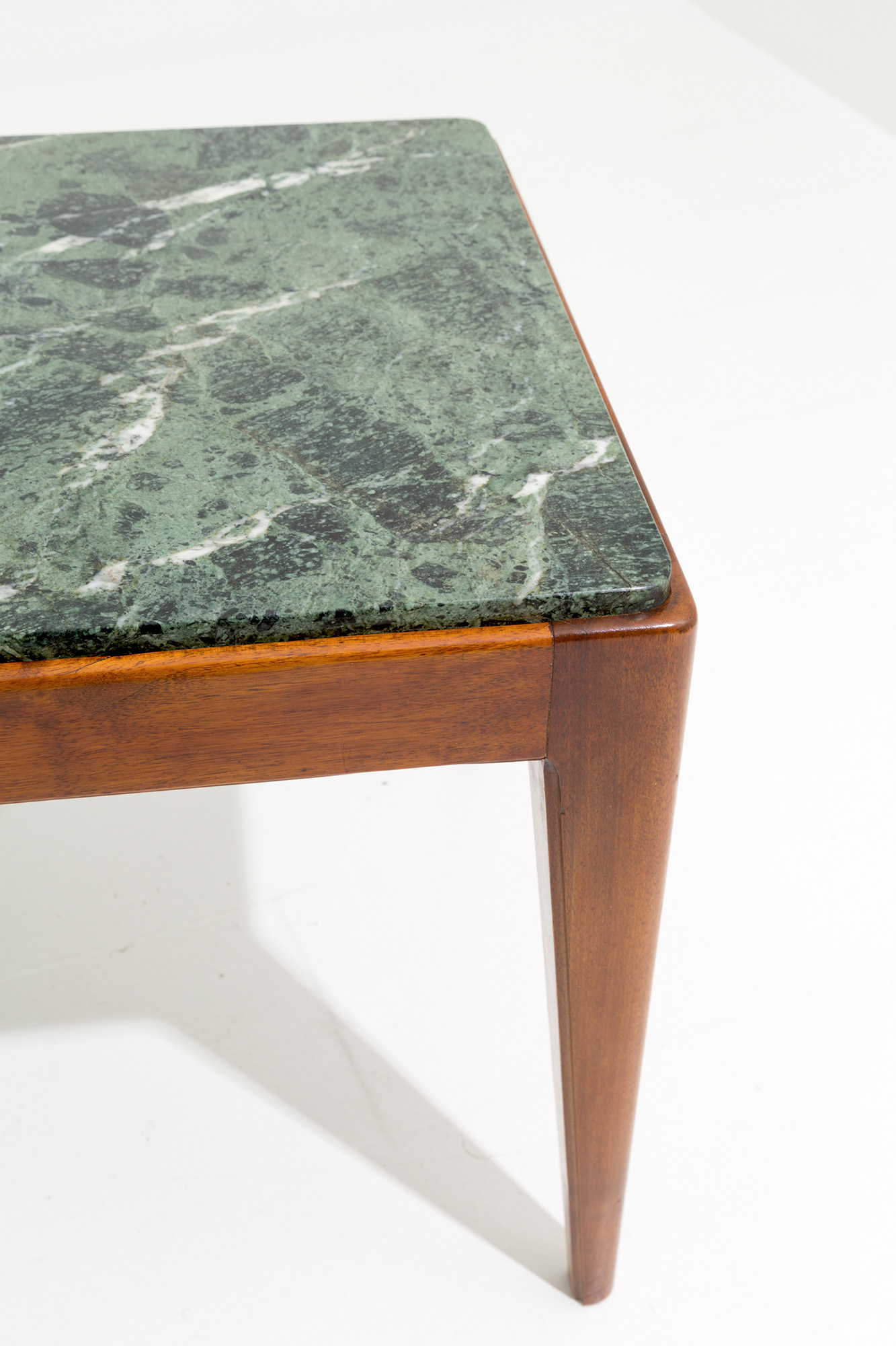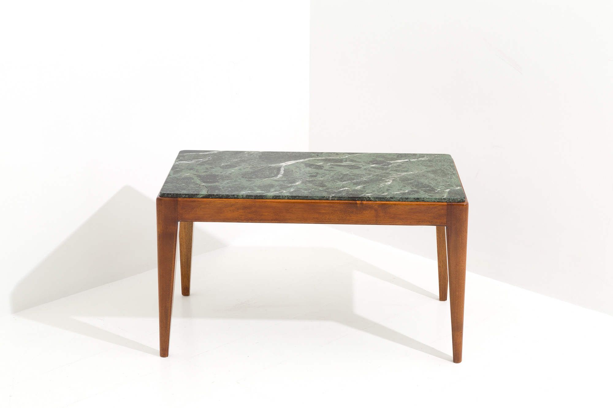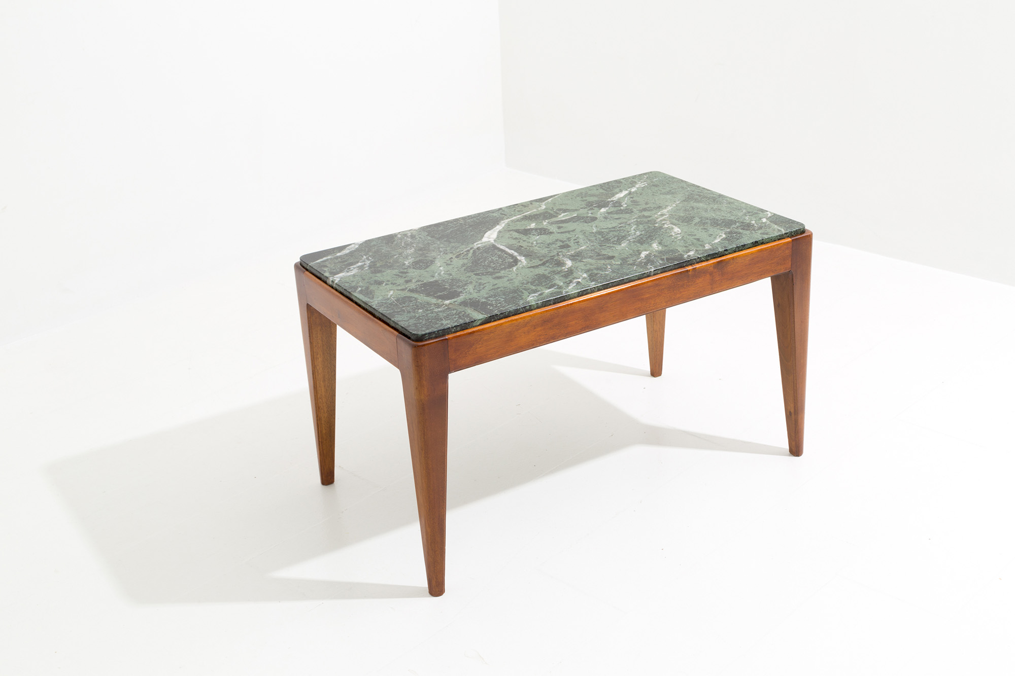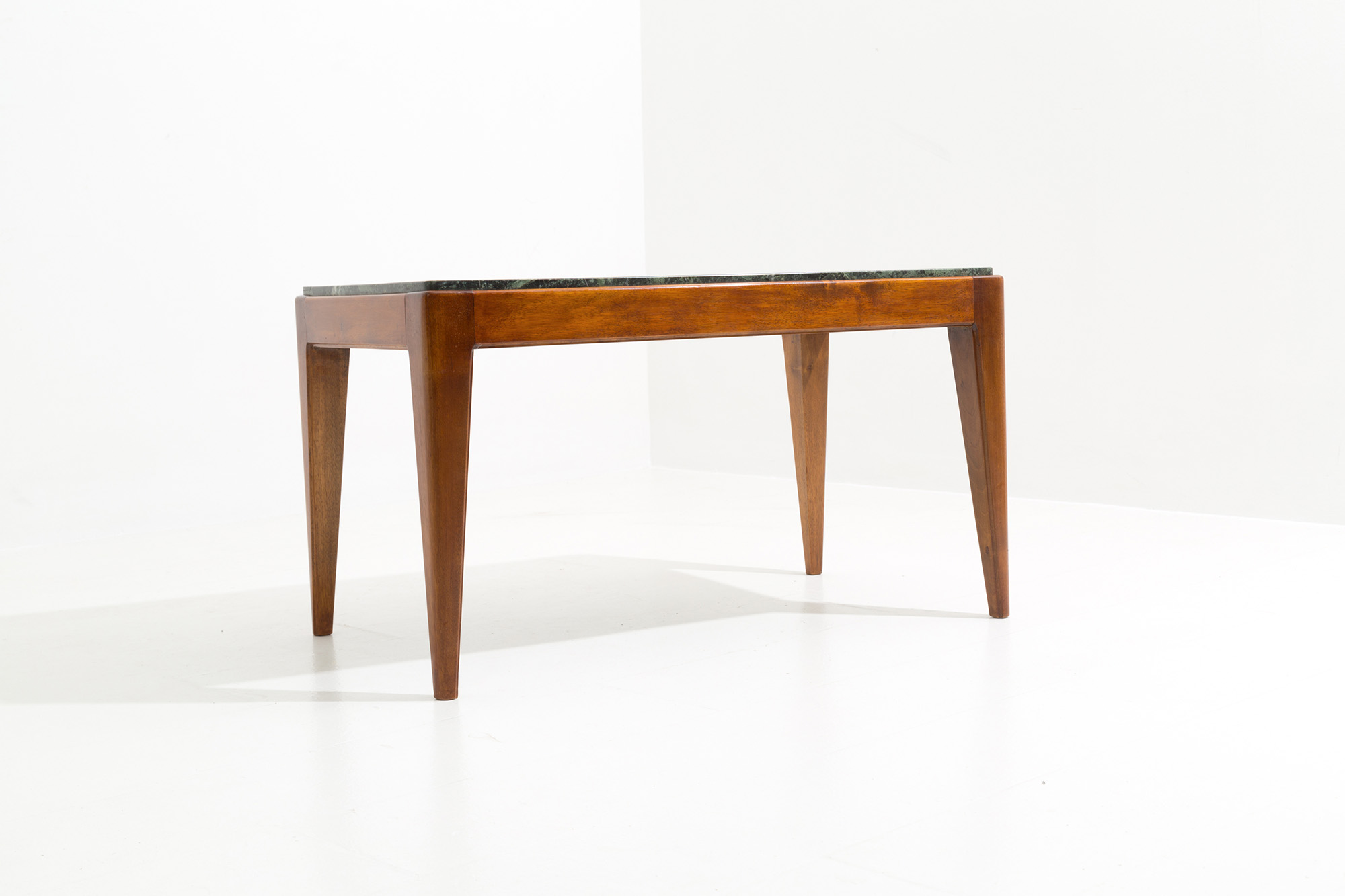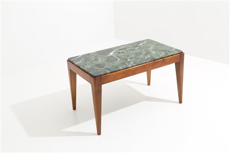 GIO PONTI (Milano, 1891-1979). Tavolino con struttura in legno e piano in marmo verde Alpi. Anni '50. Con expertise dei Gio Ponti Archives n. 21148/000. Mis. Lung. cm. 80 Alt. cm. 46 Prof. cm. 46 ca.