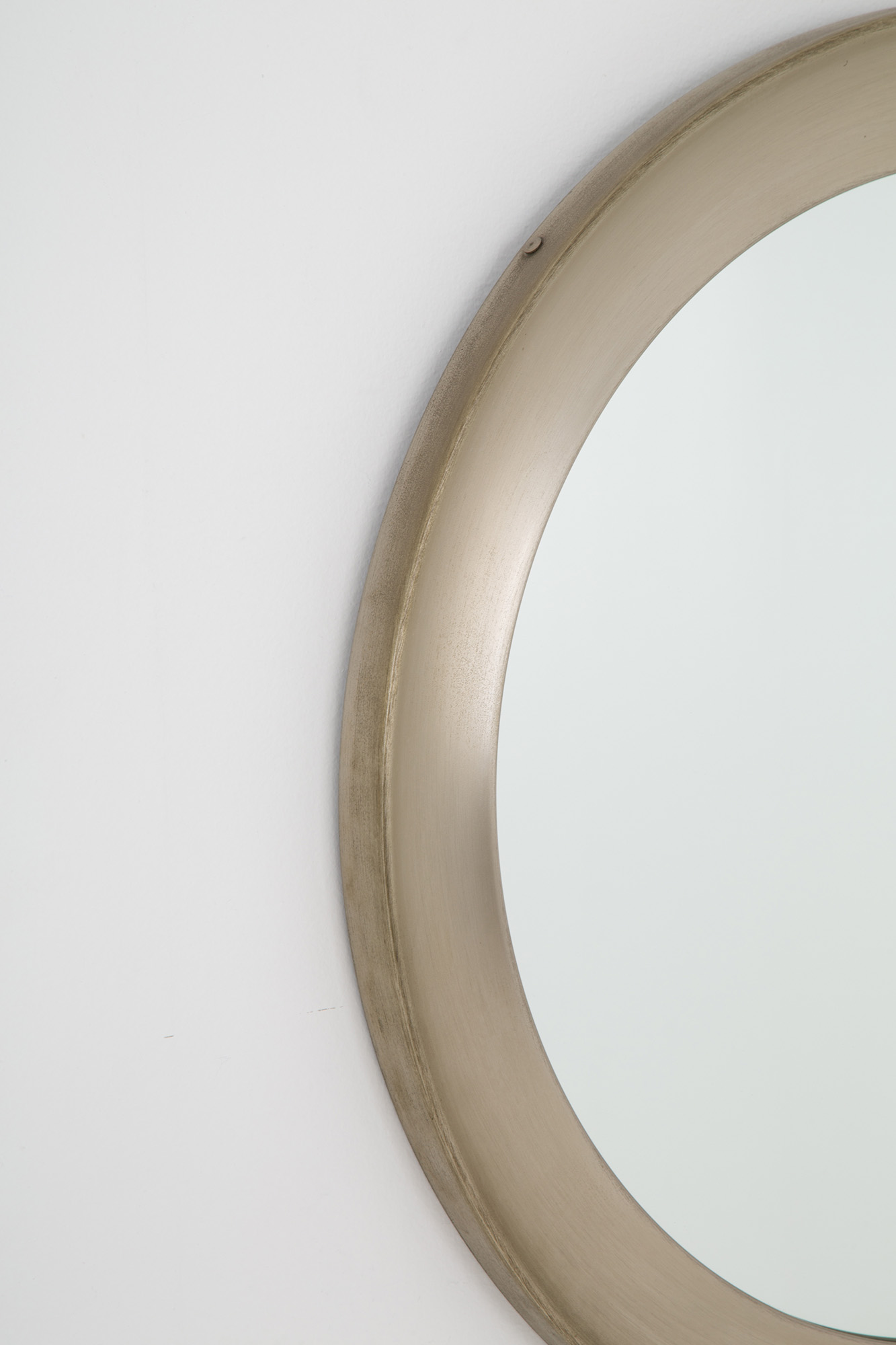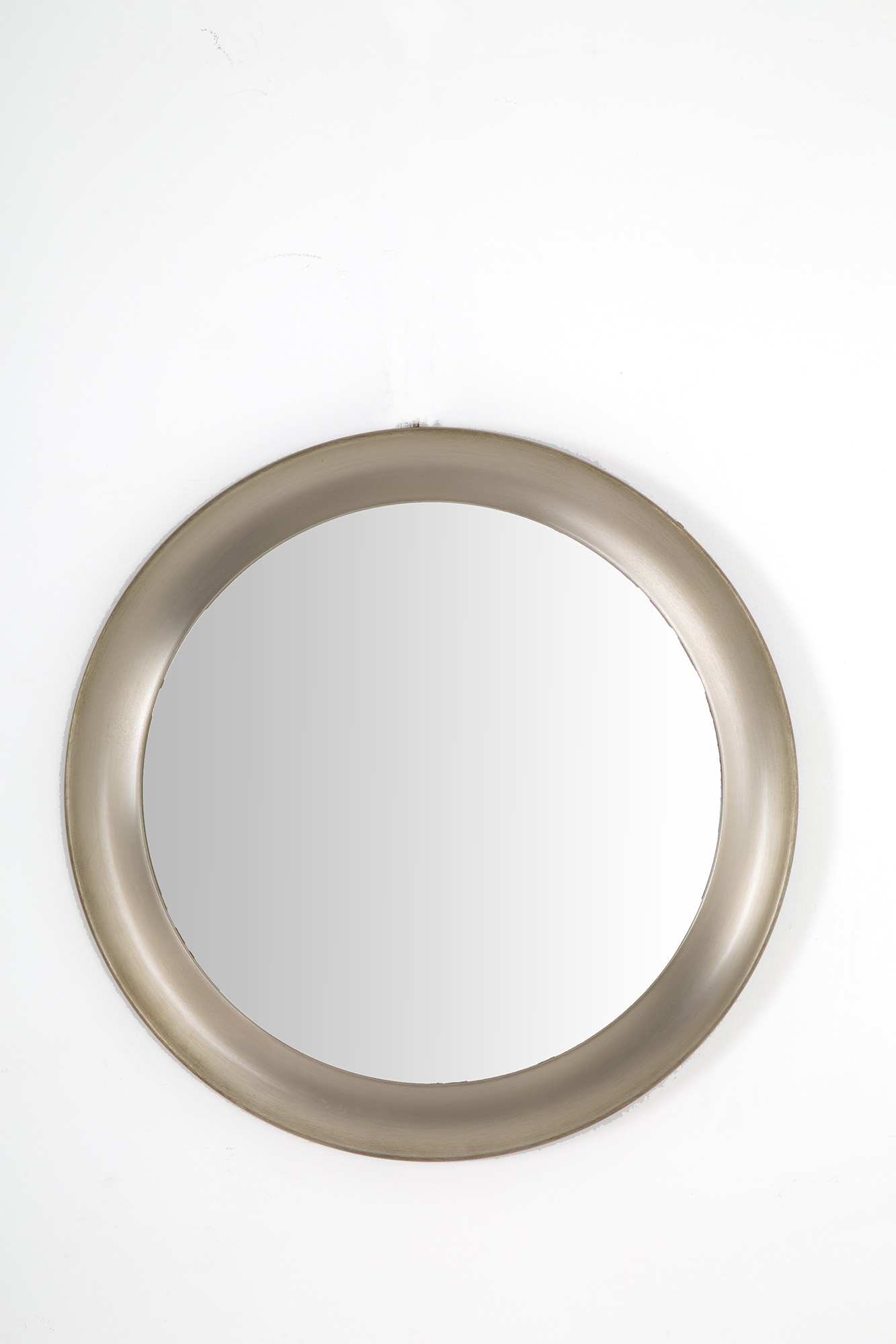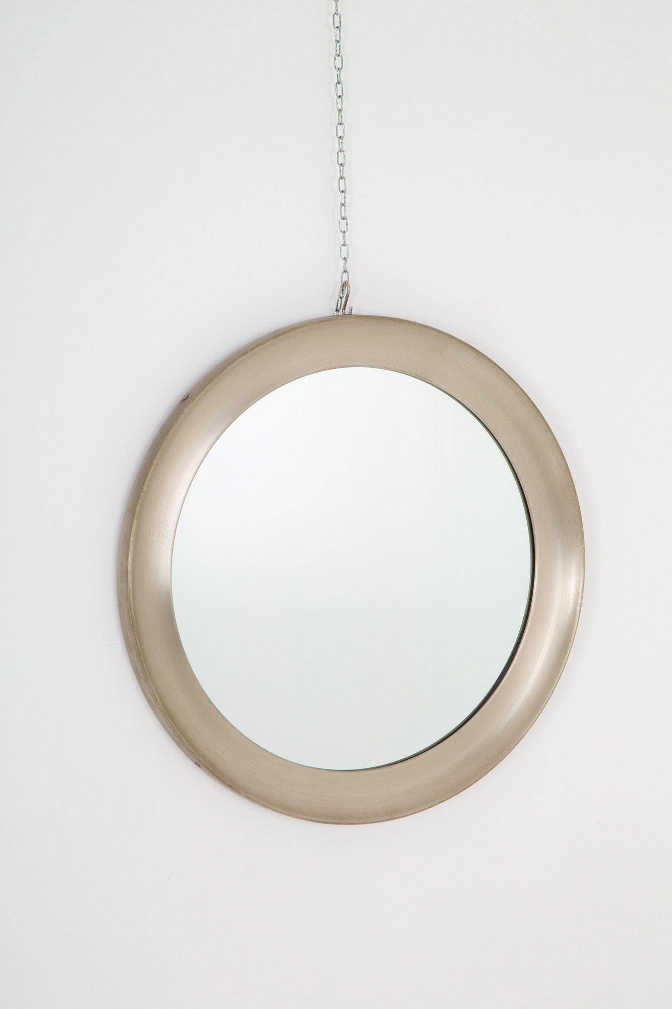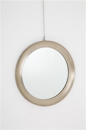 Specchio con cornice in metallo nichelato. Anni '60-'70. Mis. Prof. cm. 3 Diam. cm. 62 ca.