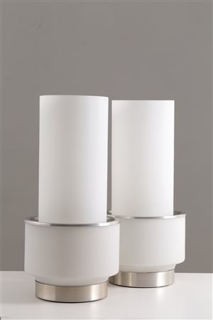 Coppia di lampade da tavolo in vetro di Murano. Produzione VISTOSI. Anni '70. Mis. Alt. cm. 53 Diam. cm. 22 ca.