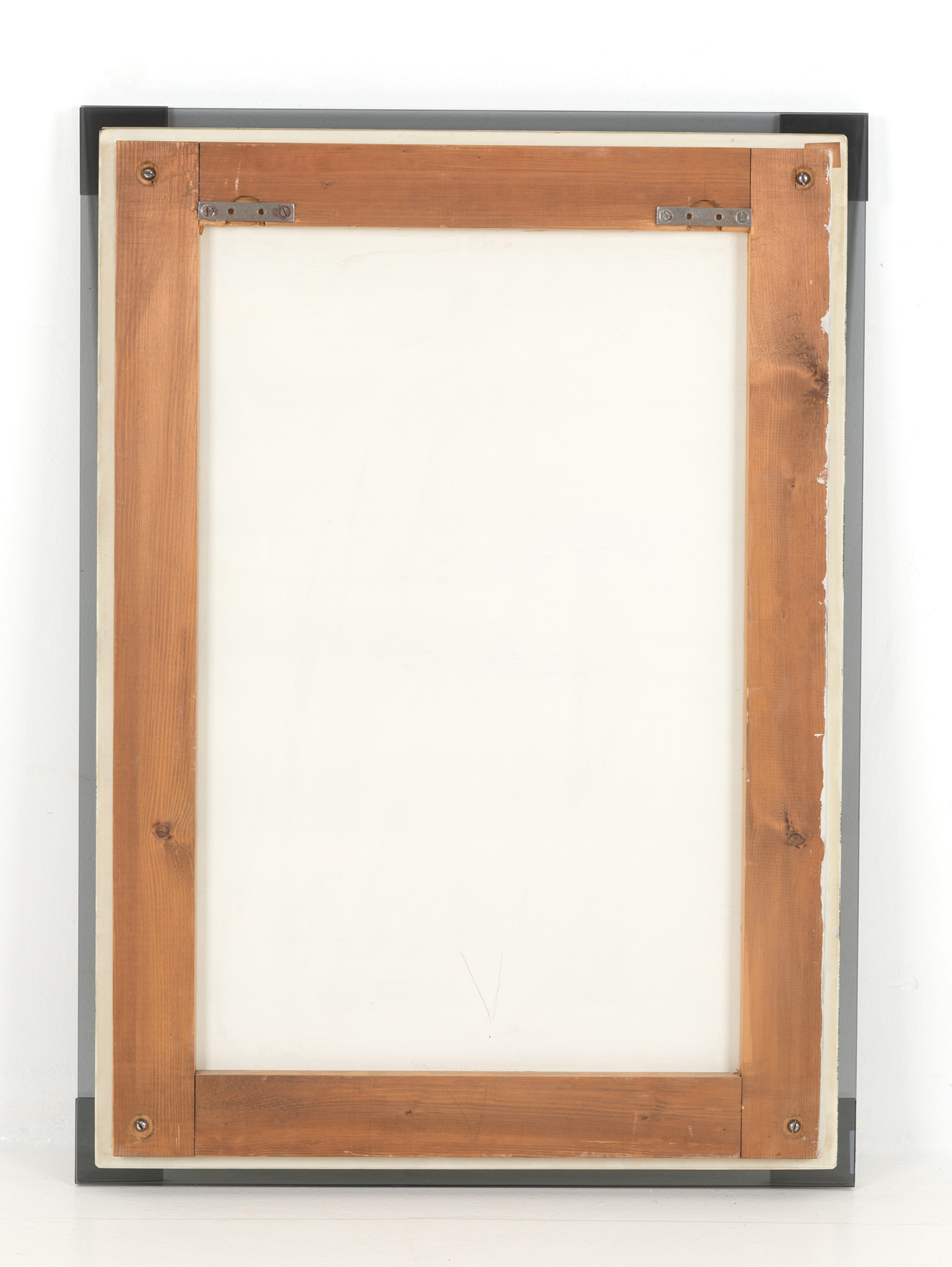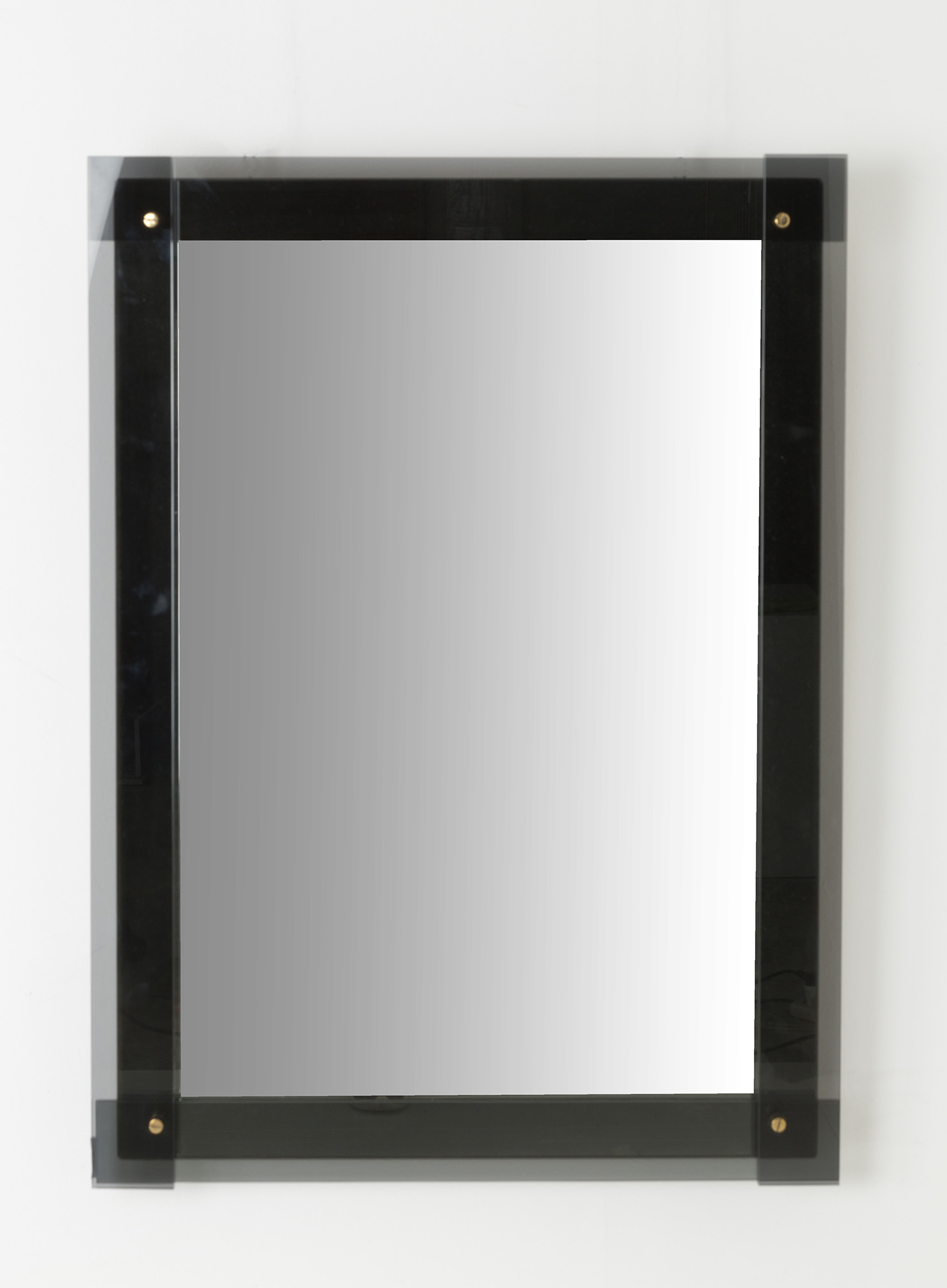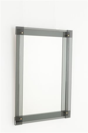 Specchiera con cornice in vetro fumè nero. Produzione FONTANA ARTE. Anni '60. Mis. Lung. cm. 66 Alt. cm. 91.5 Prof. cm. 7 ca.