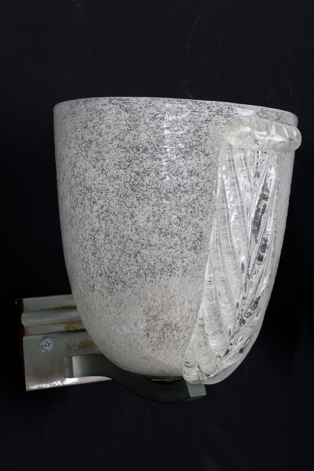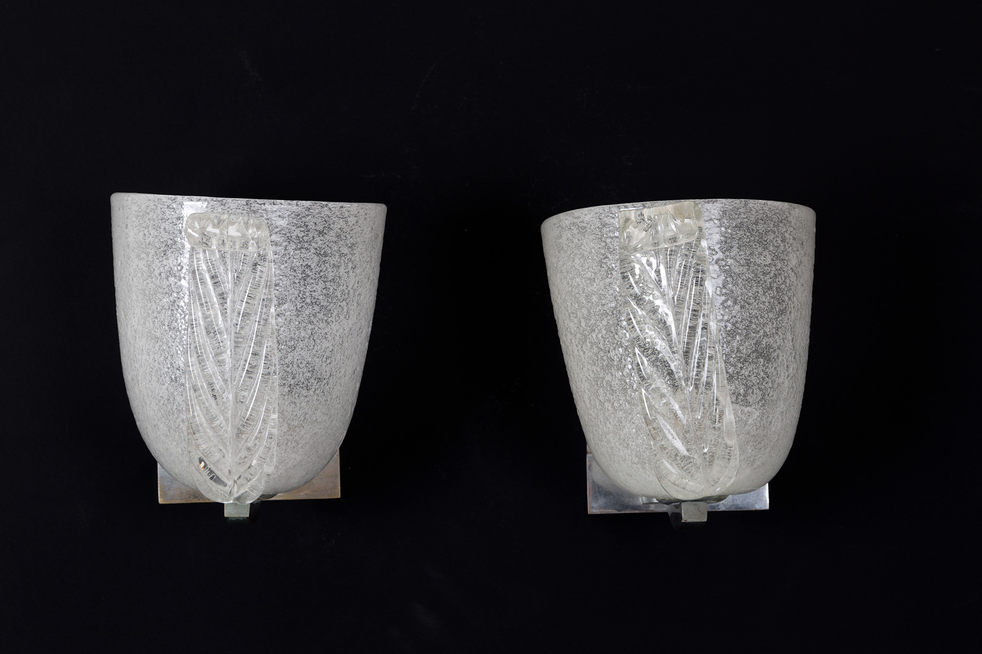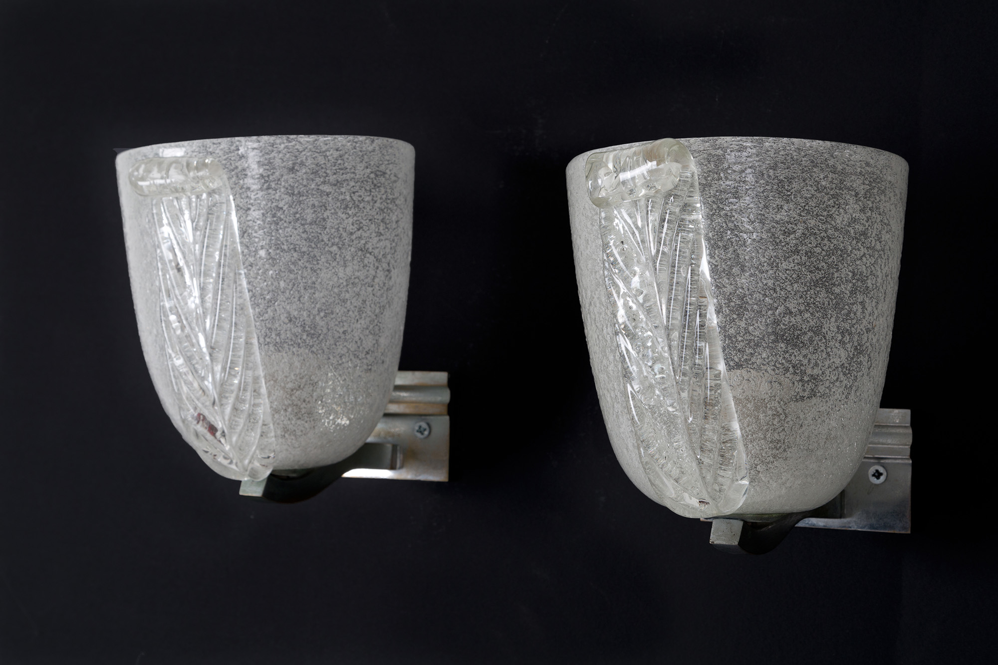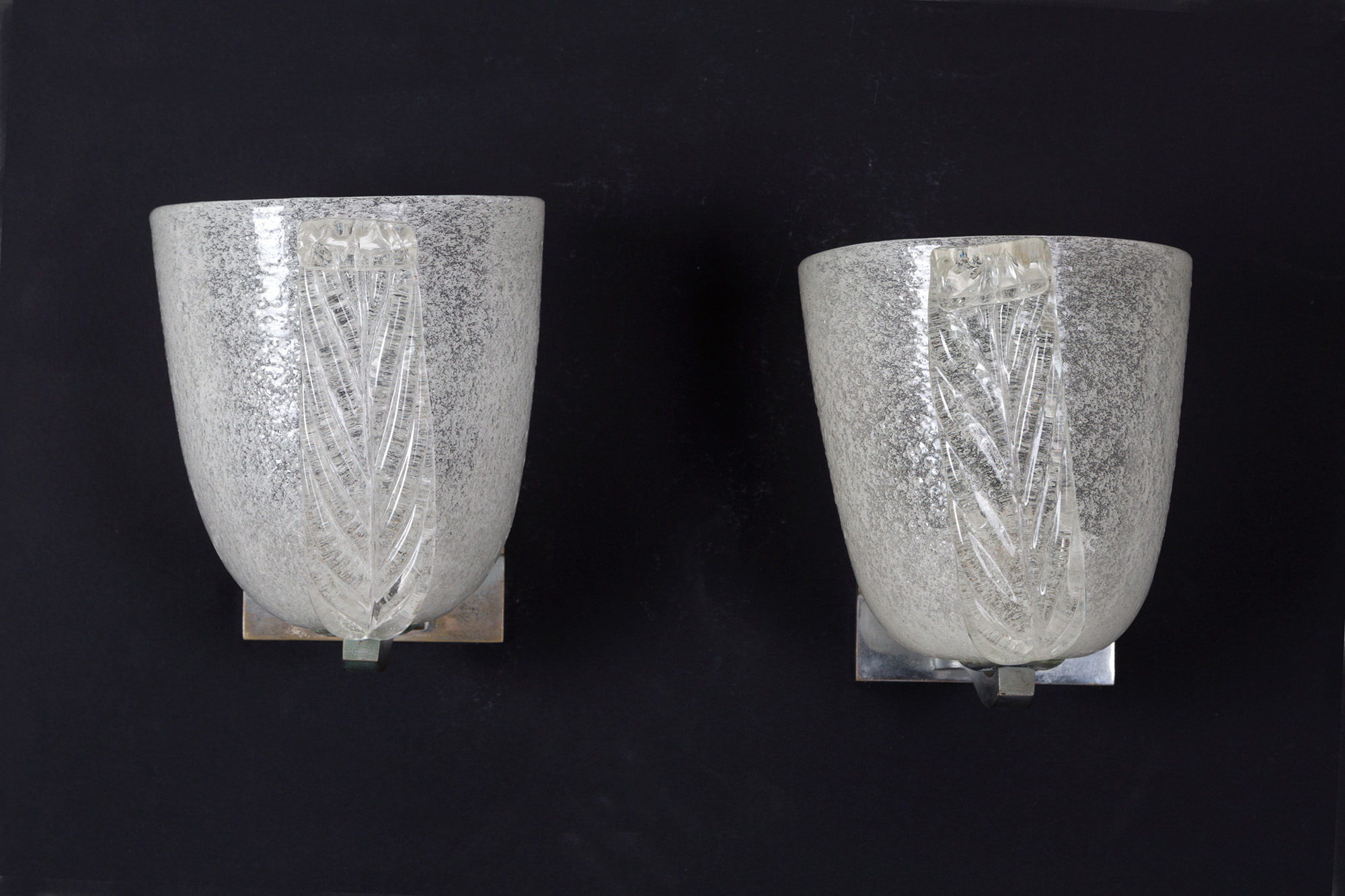 Coppia di applique in vetro di Murano. Produzione SEGUSO. Anni '50. Mis. Alt. cm. 20 Diam. cm. 13 ca.