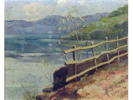 Firma illeggibile (XX secolo) Paesaggio gardesano Coppia di dipinti Olio su tavoletta Firmati Misure 24x30 cm