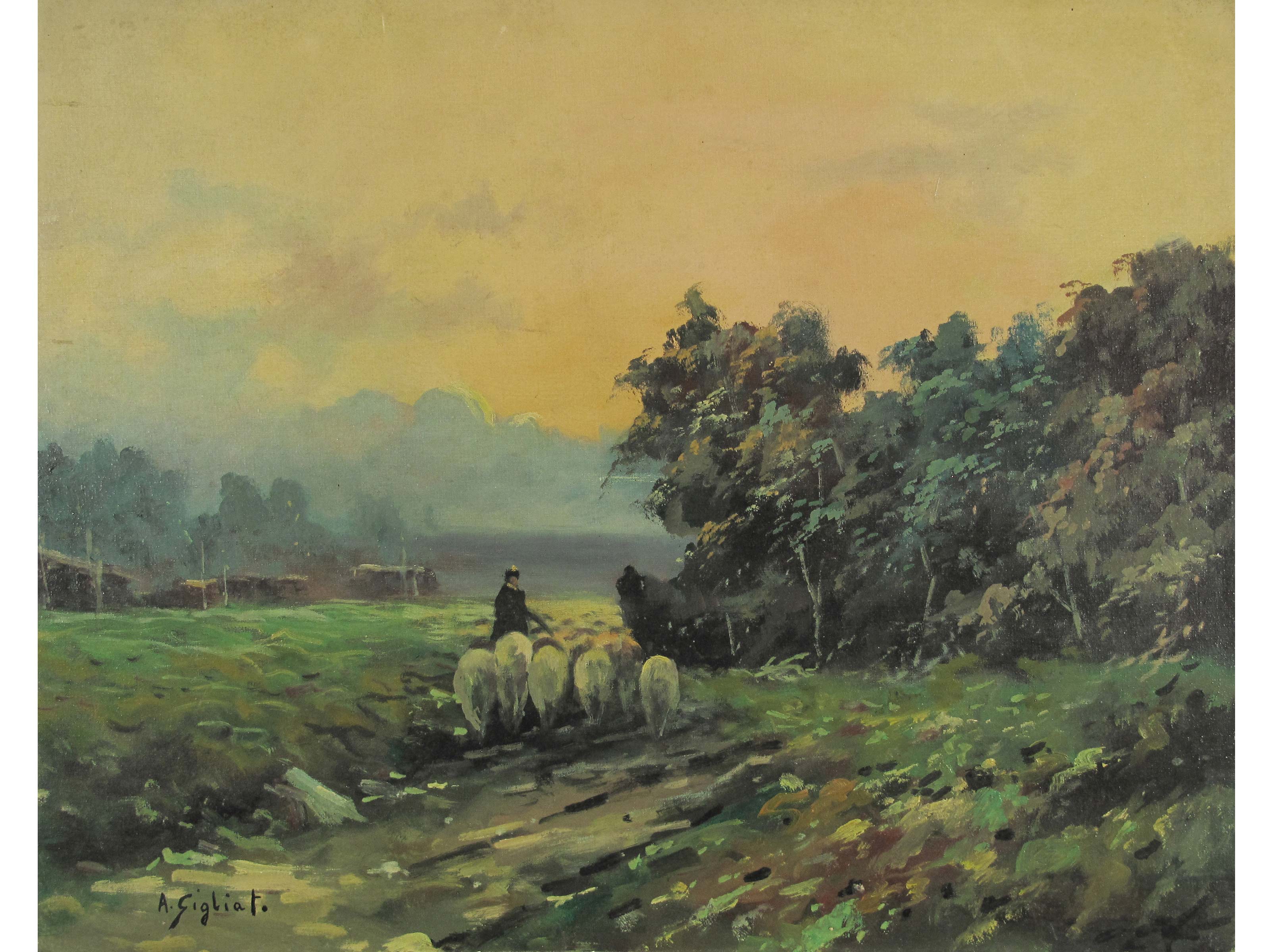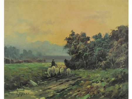 A. Gigliato (XX secolo) Paesaggio con gregge Olio su tela Firmato Senza...