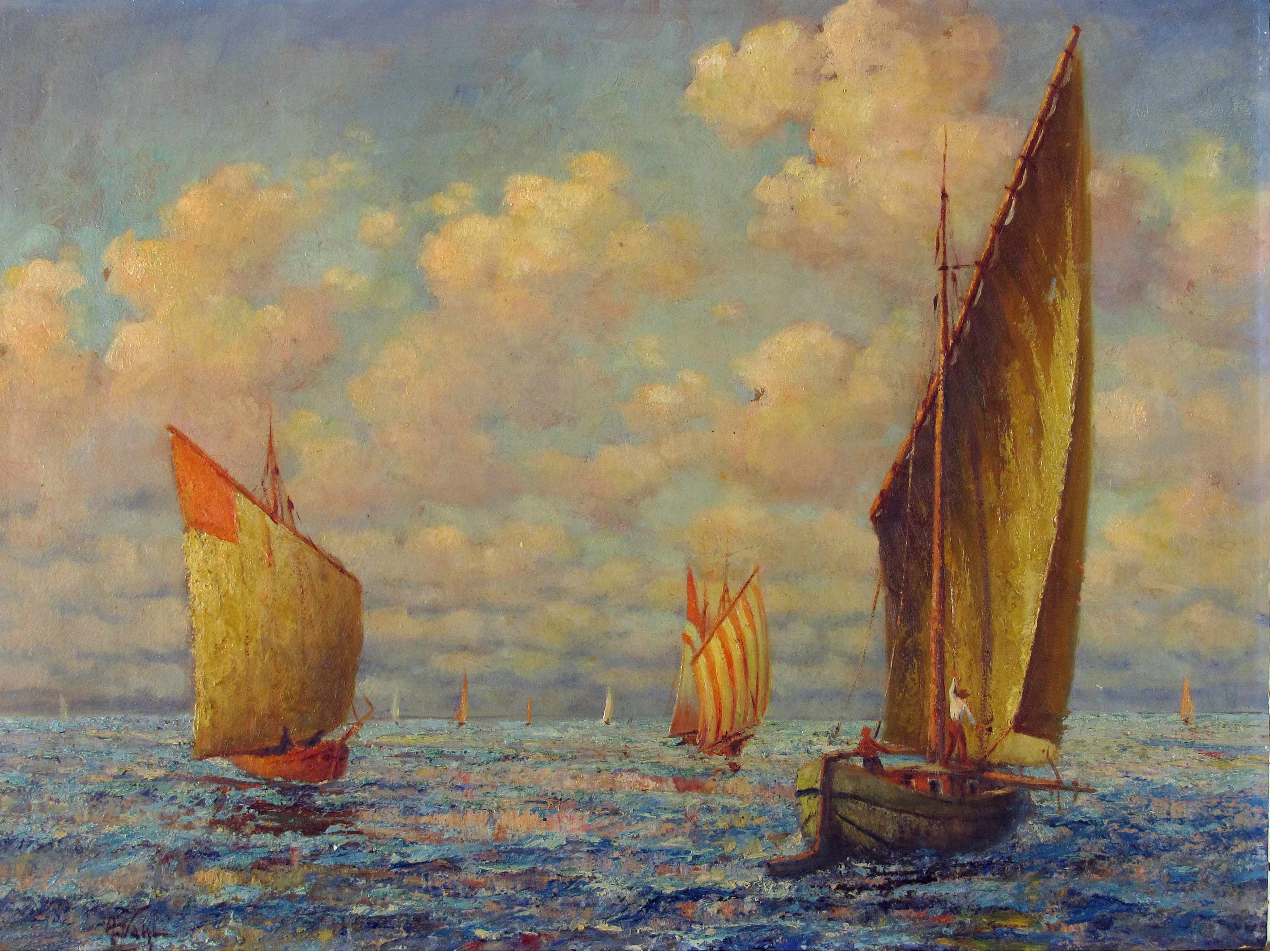 A. Vahl (XX secolo) Barche a vela Olio su cartone pressato Firmato Senza...