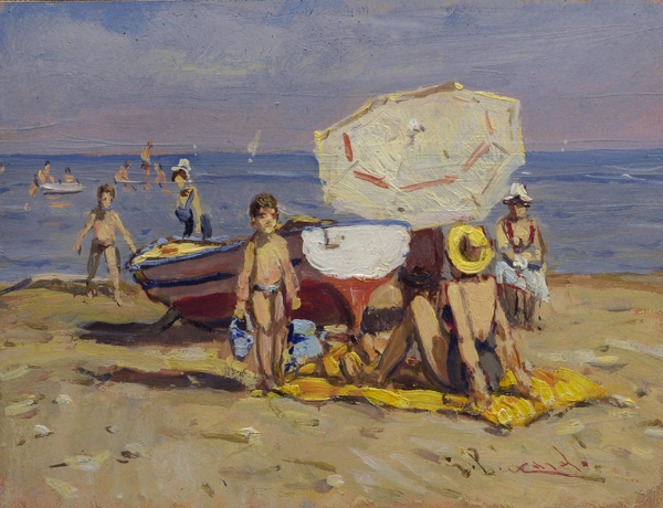 Giorgio Luxardo (Zara, 1930) BAGNANTI Olio su compensato, cm. 15,5x20 Firma in basso a destra. Sul verso: firma e titolo.