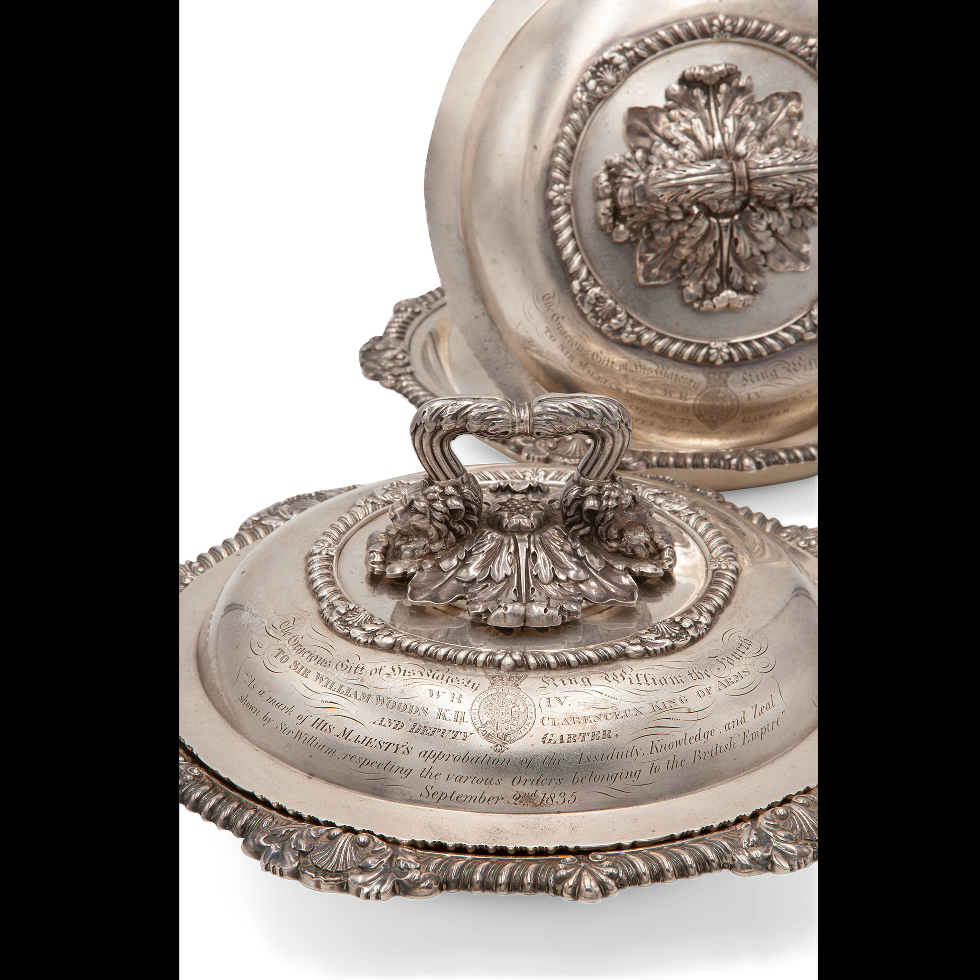 Coppia di legumiere in argento, Londra 1806 Manifattura del periodo Giorgio III Peso complessivo gr. 3388, 12,5x28x27 cm. Cad.