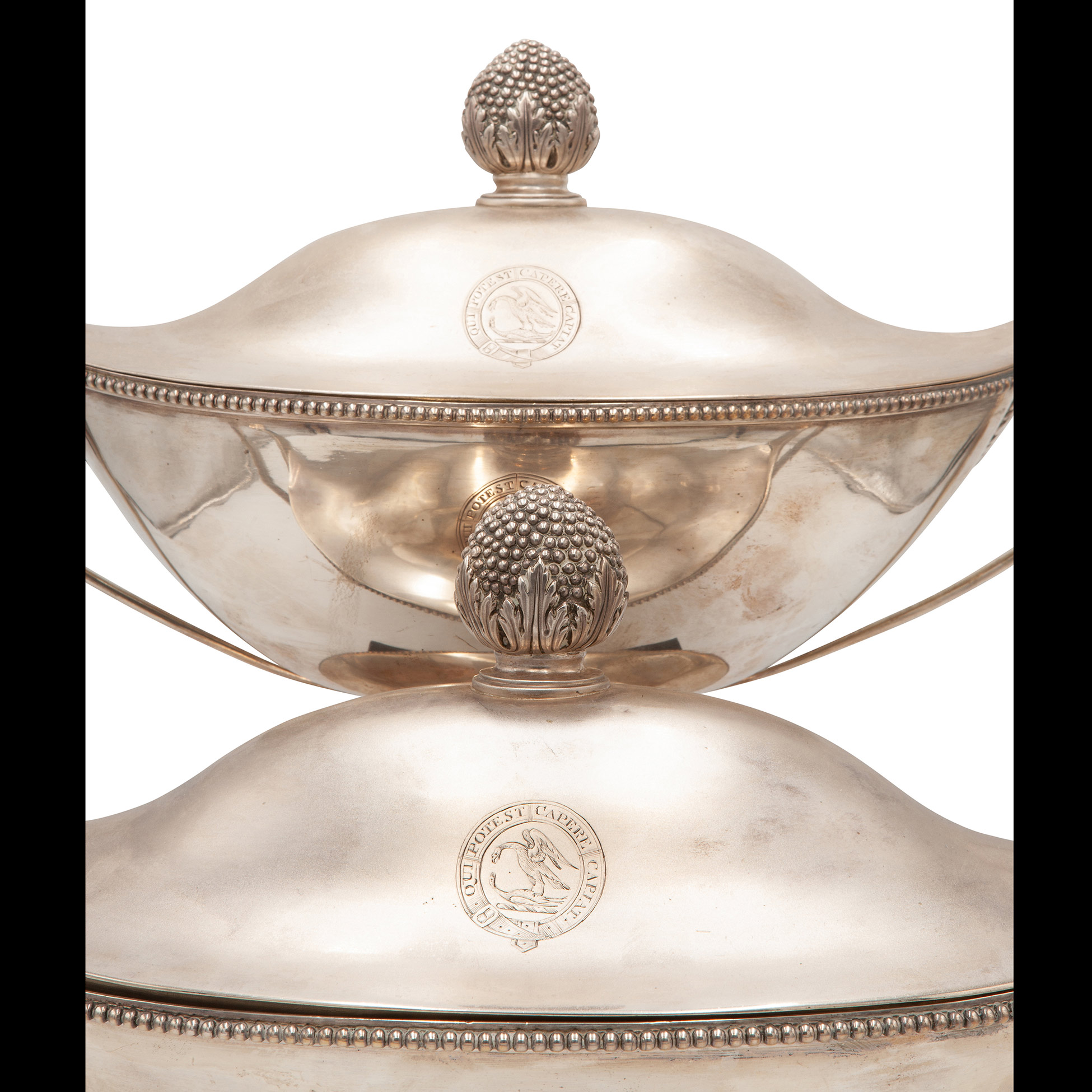 Coppia di zuppiere ovali in argento, Napoli 1804