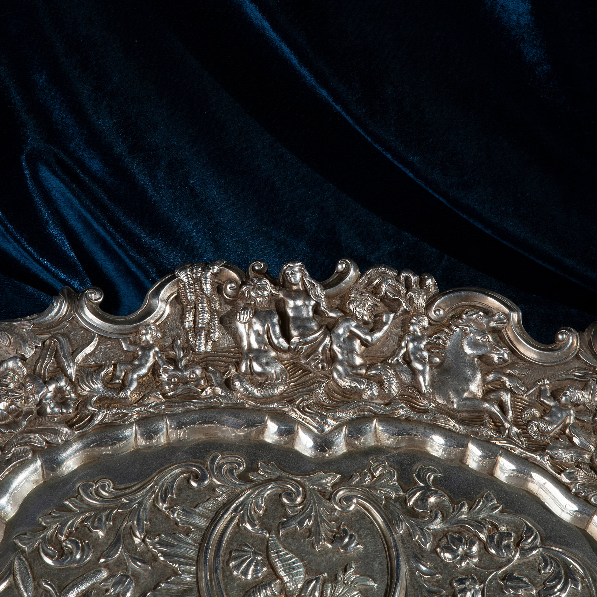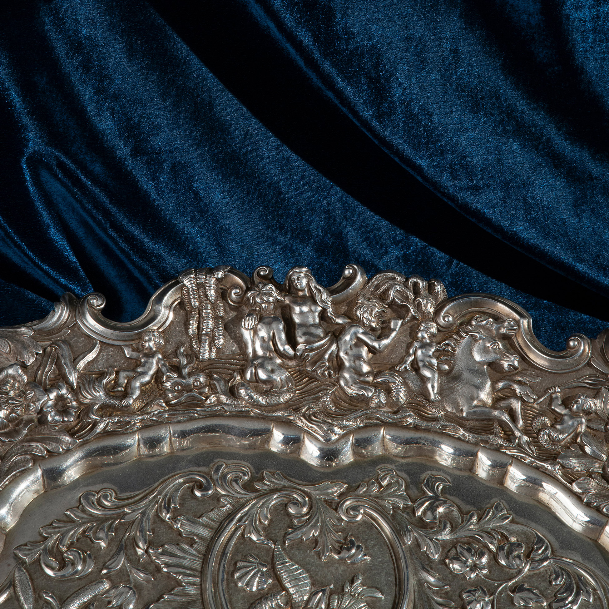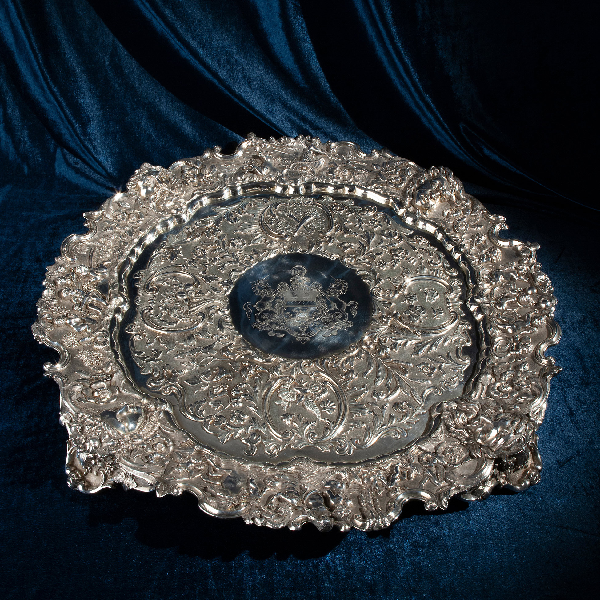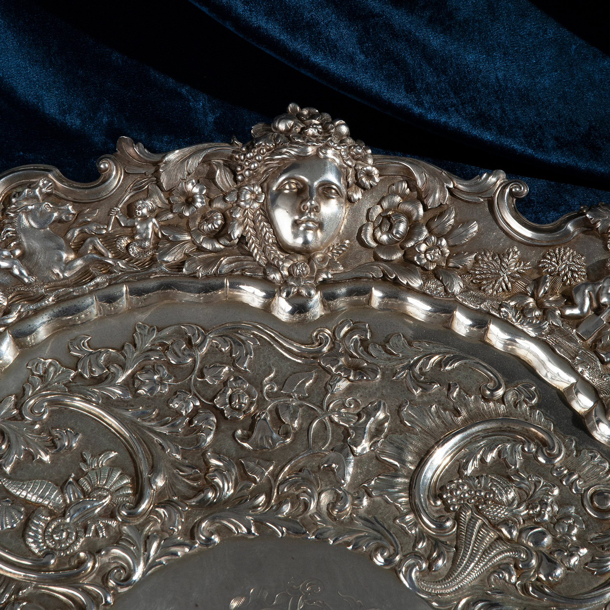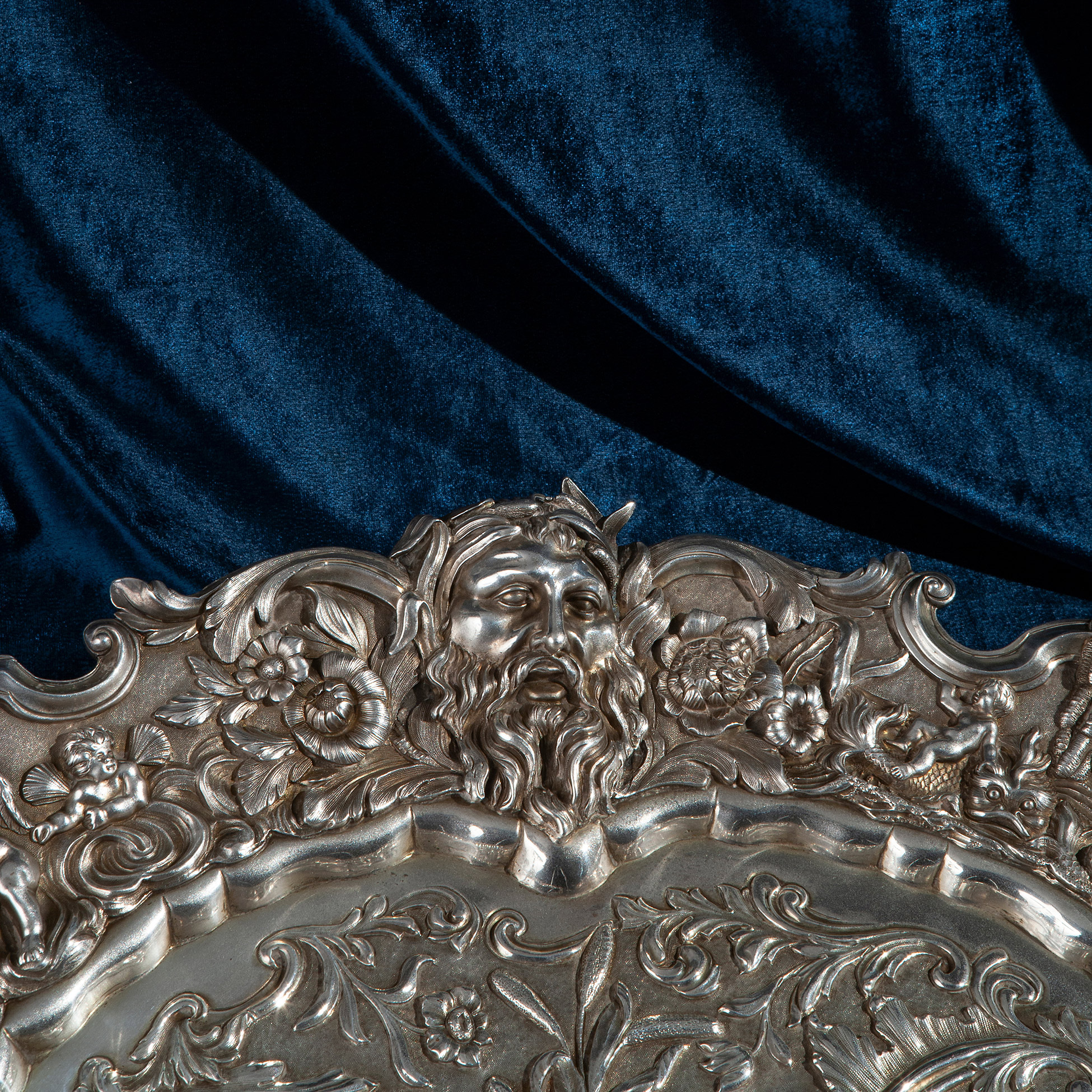 Salver "dei quattro elementi" in argento, Londra 1844 Questo Salver fu commissionato all'argentiere John Edward Terry. L'artista ha disegnato il manufatto descrivendo un'allegoria dei quattro elementi, rappresentati da quattro figure principali e da alt