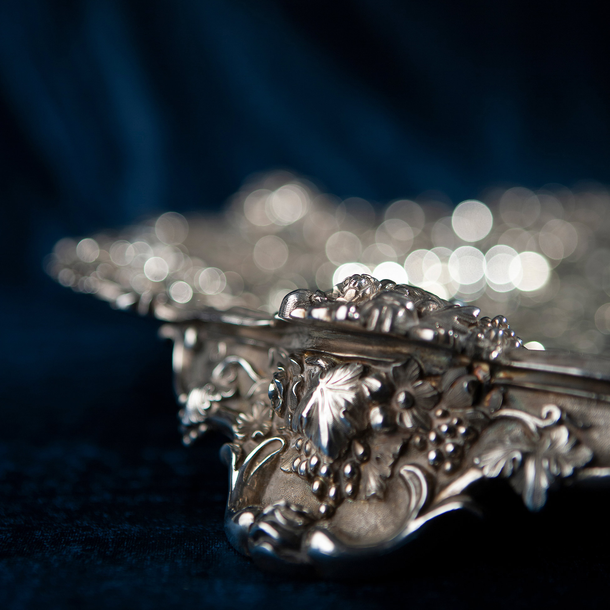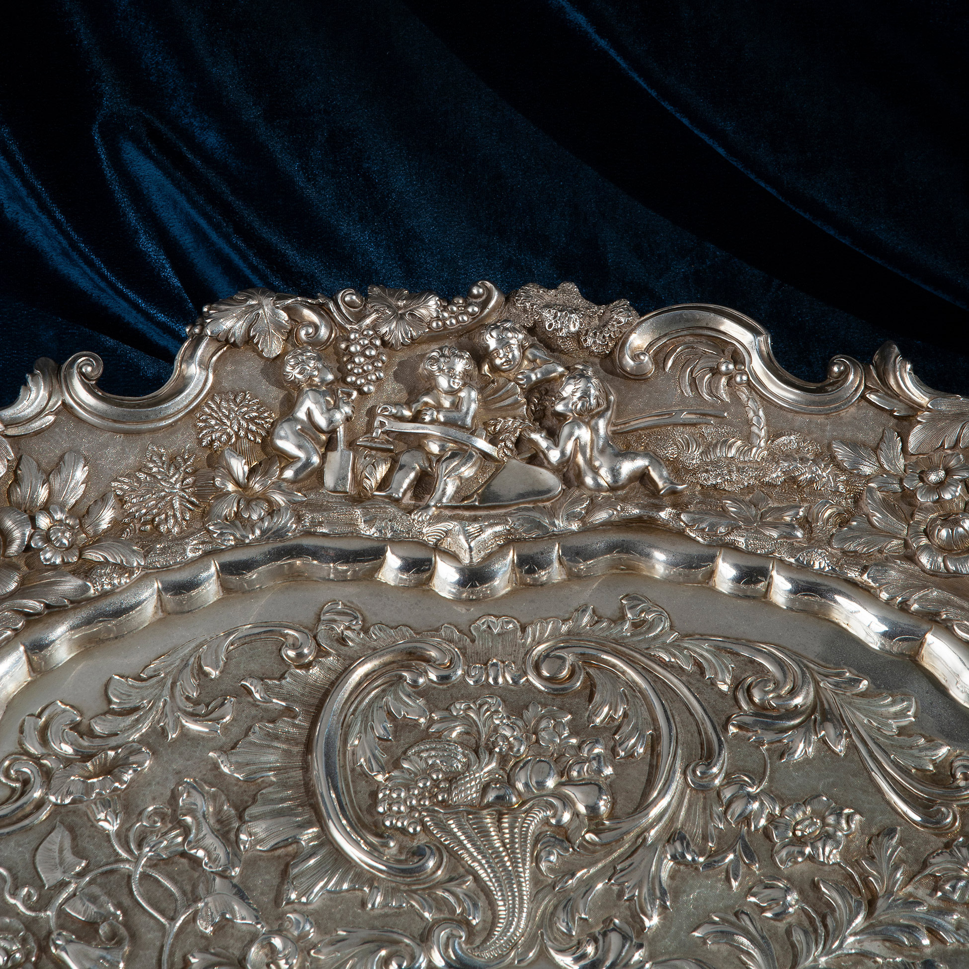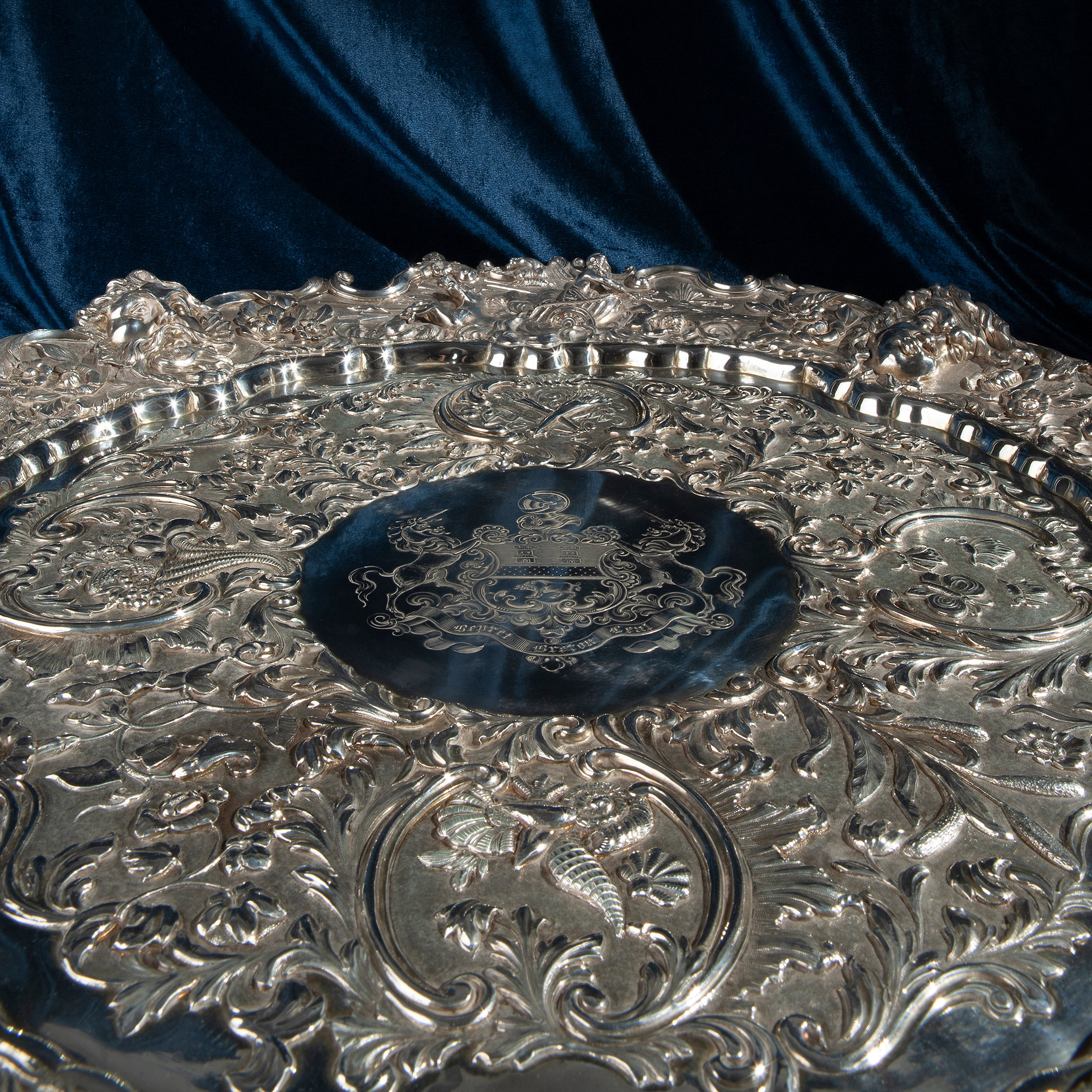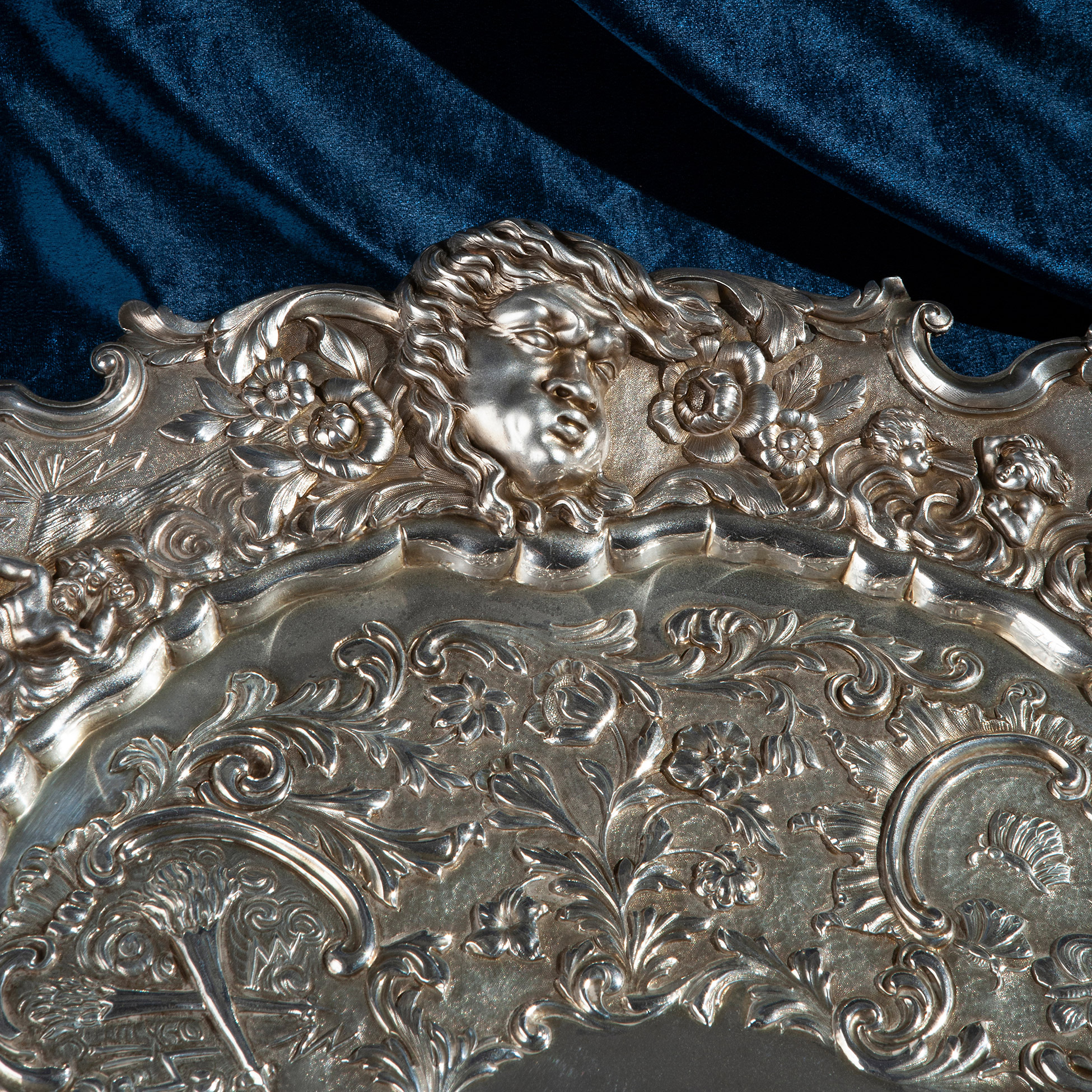 Salver "dei quattro elementi" in argento, Londra 1844 Questo Salver fu commissionato all'argentiere John Edward Terry. L'artista ha disegnato il manufatto descrivendo un'allegoria dei quattro elementi, rappresentati da quattro figure principali e da alt
