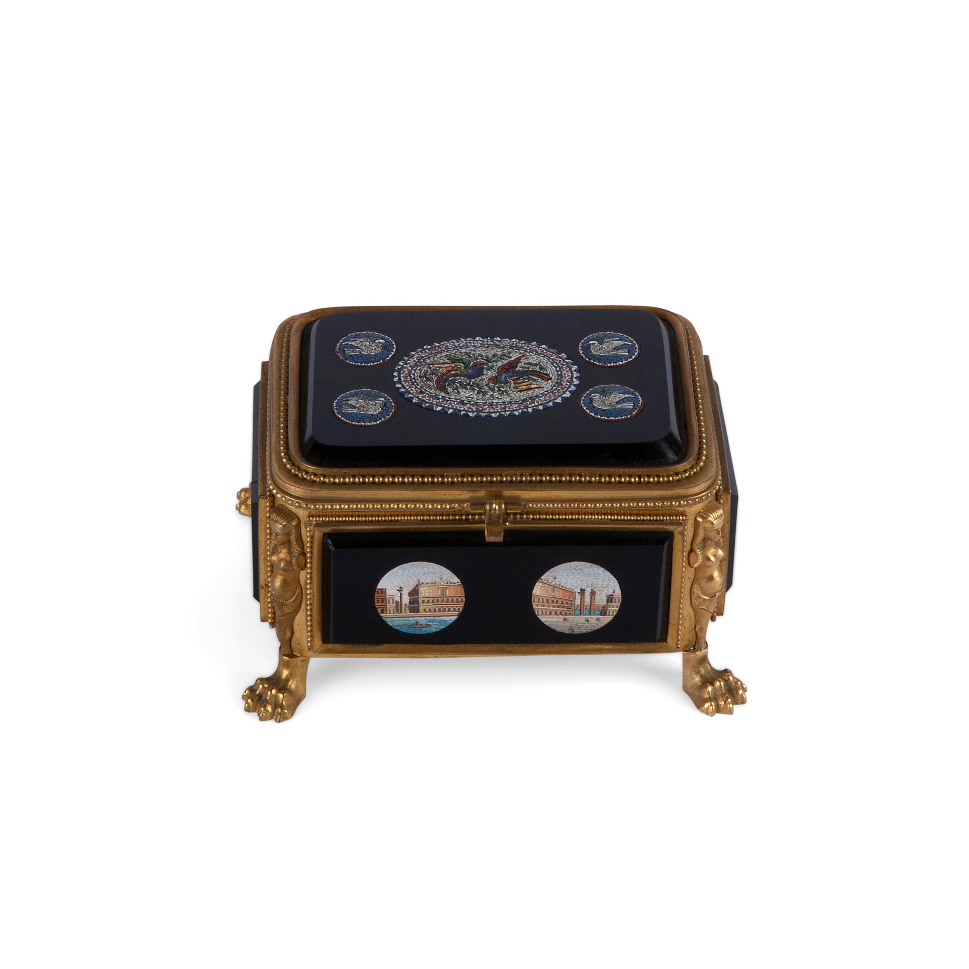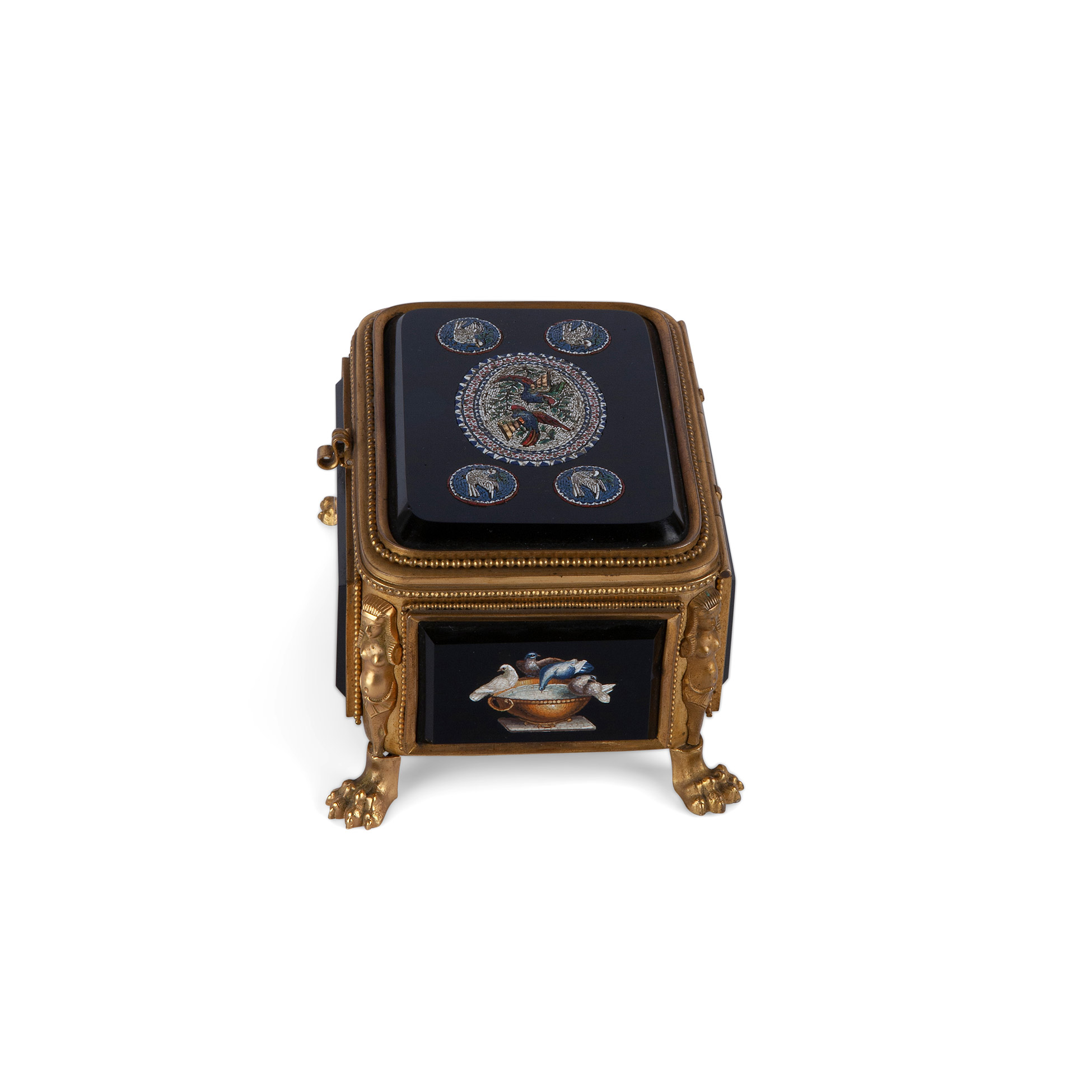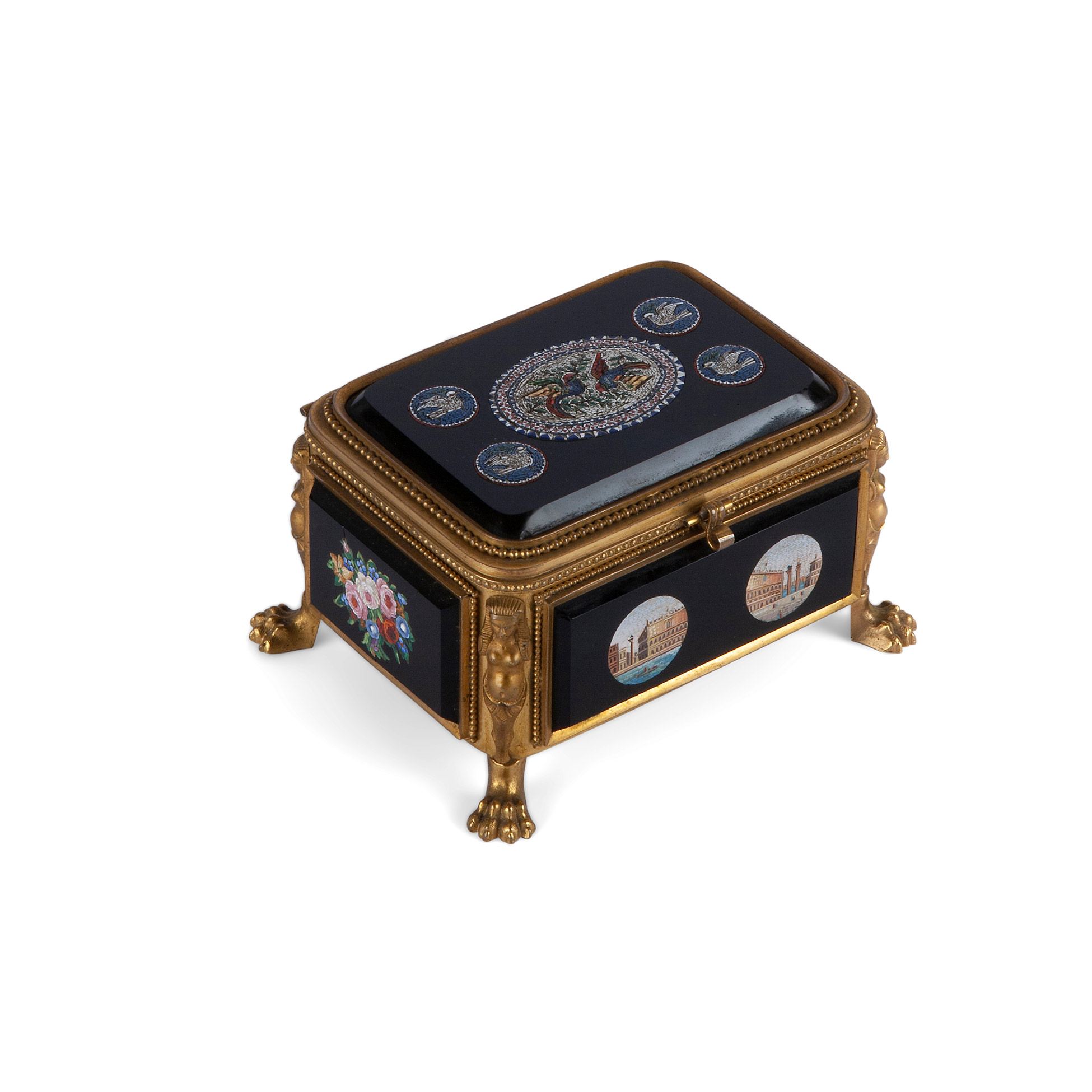 Scatola in bronzo dorato con micromosaici, 1850 ca.