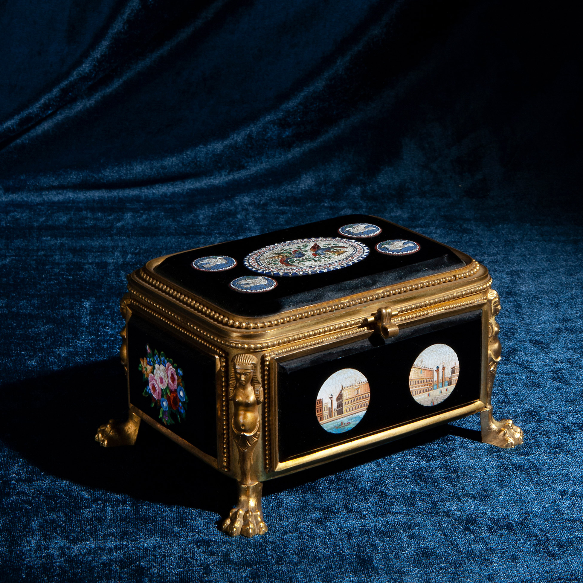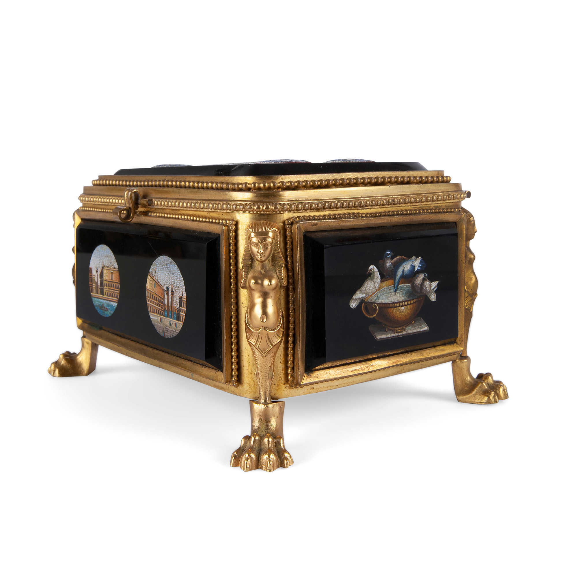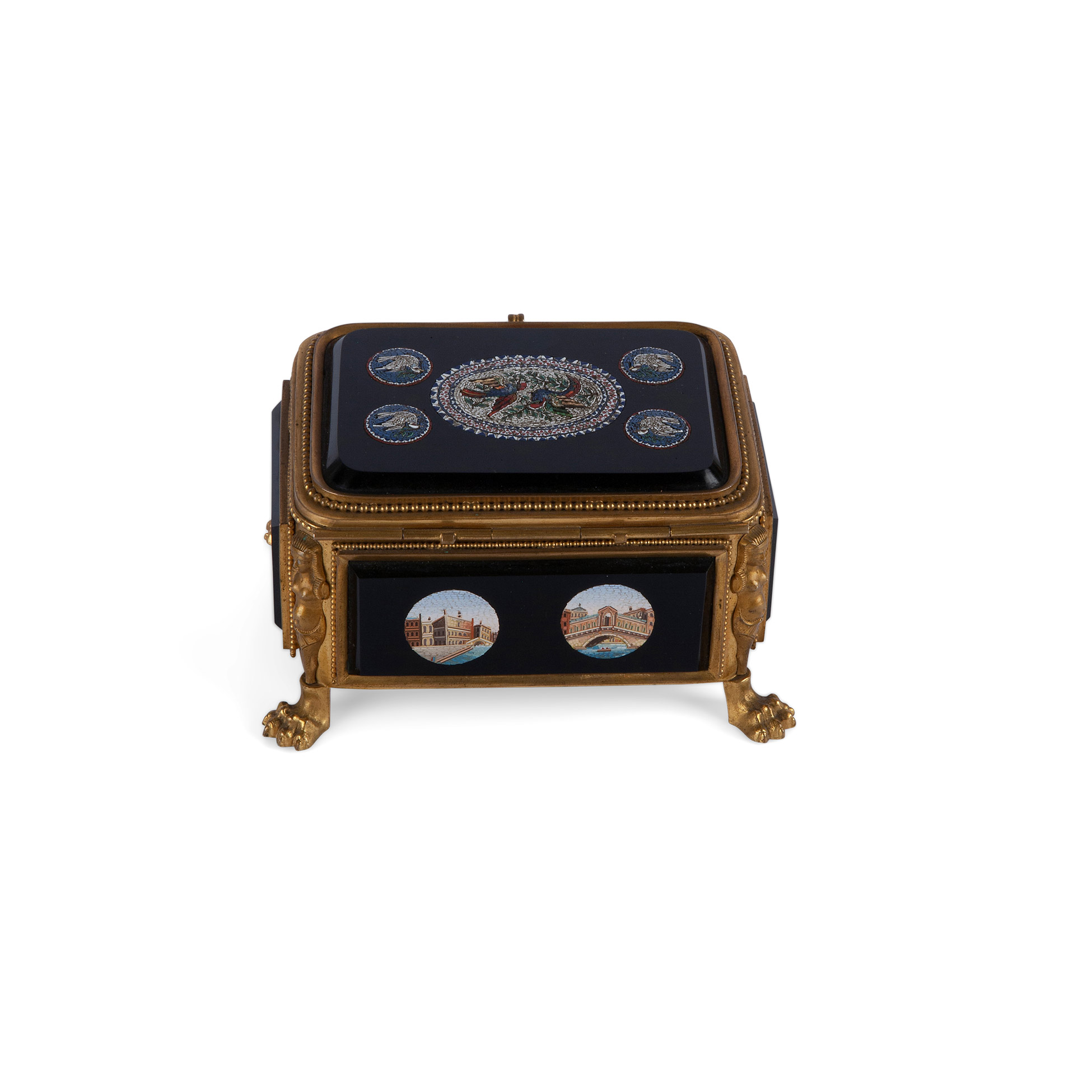 Scatola in bronzo dorato con micromosaici, 1850 ca.