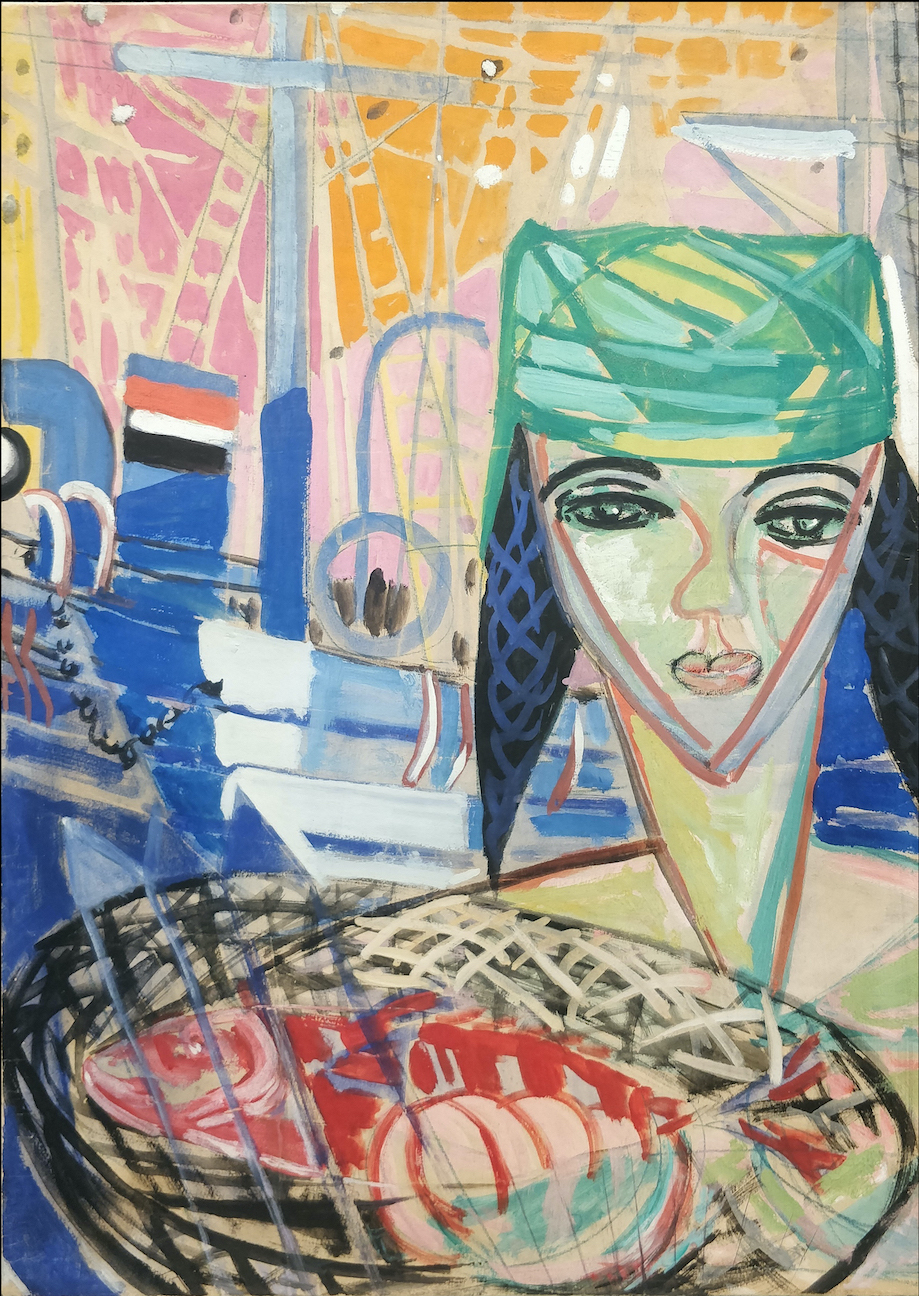 Antonio Corpora Tempera su carta intelata 70x50 N.M. e figura in un interno 1950