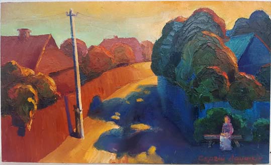 Laushkin S. Olio su tela incollato su faesite 30x50 Sednev street 2013