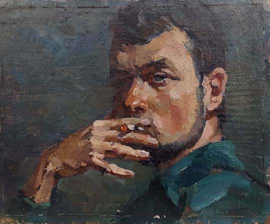 Sheludko L.N. Olio su cartone 35x43 Man Portrait 1967