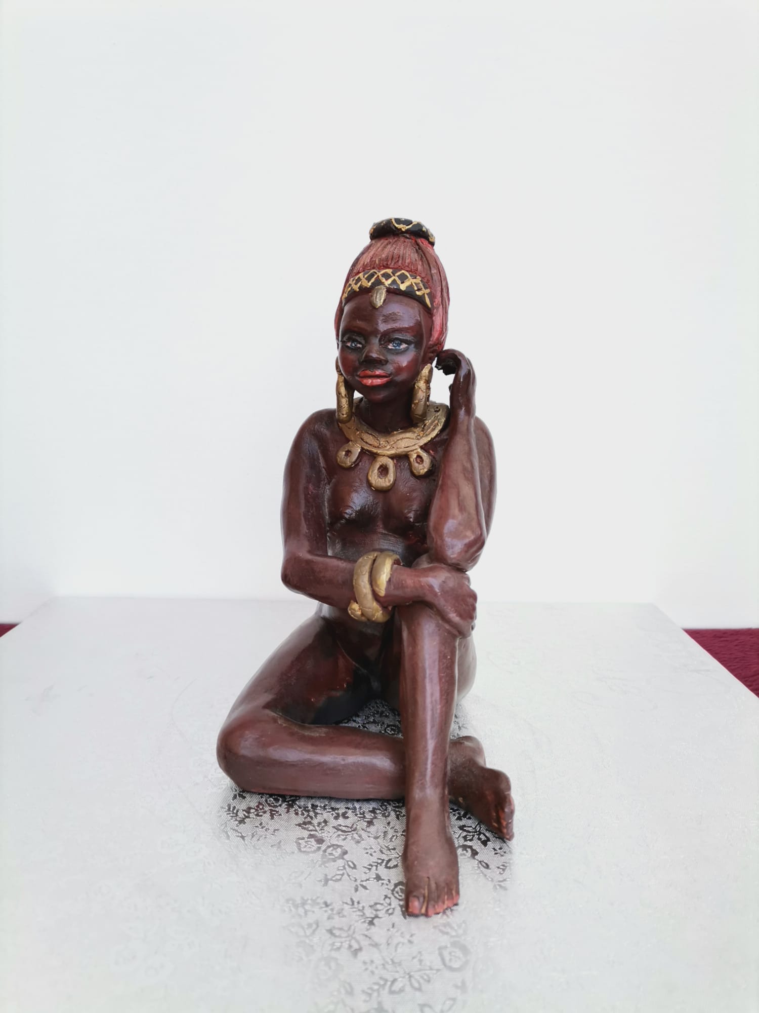 Elvira Sirio Scultura - Terracotta patinata 20x15x11 Donna Africana 2014 Autentica dell'artista su foto