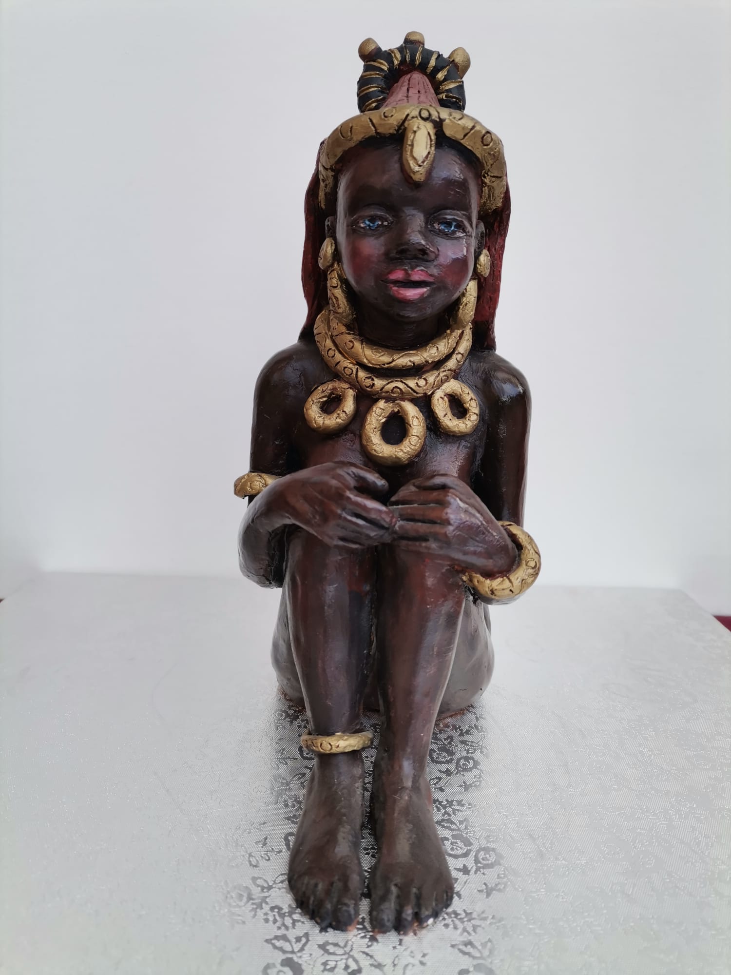 Elvira Sirio Scultura - Terracotta patinata 23x16x10 Donna Africana 2015 Autentica dell'artista su foto