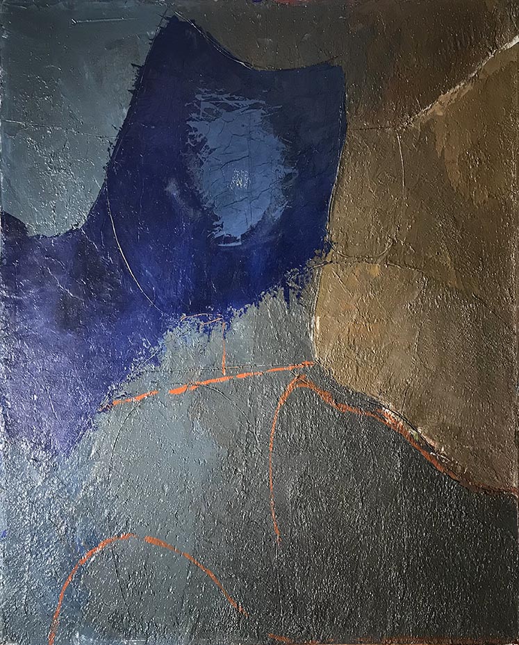 Alfredo Chighine Olio su tela 100x81 Blu su fondo grigio 1973