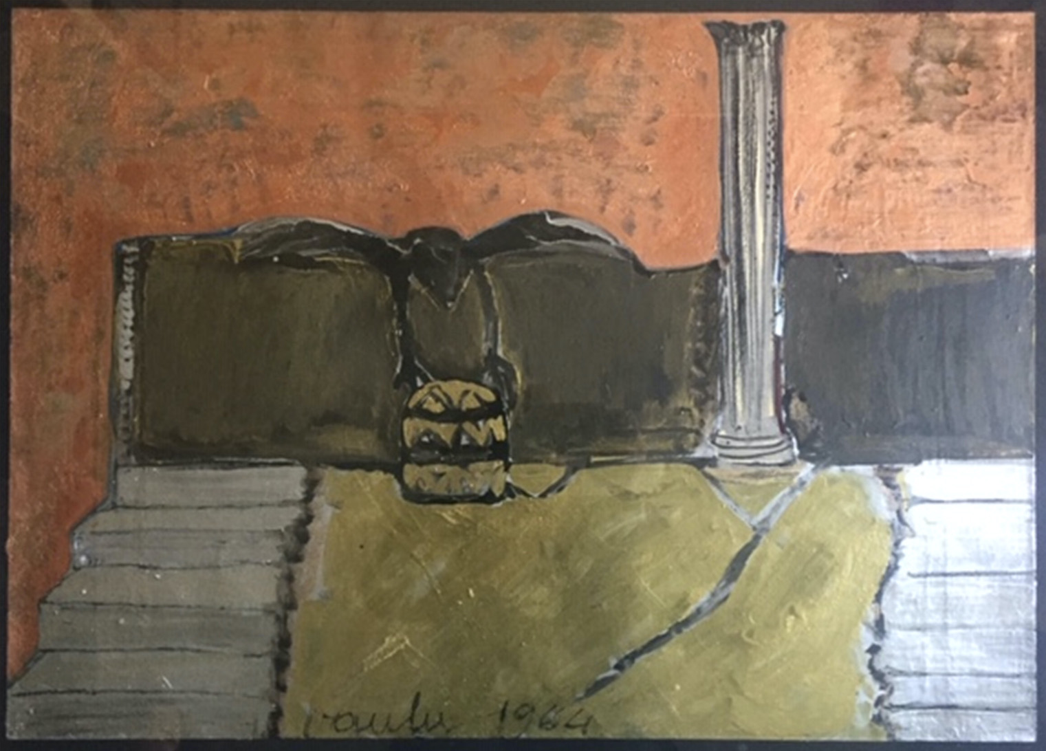 Sergio Vacchi Olio e tecnica mista su cartone 50x70 La mitra 1964 Esposto a Roma nella Mostra Concilio Vaticano II Provenienza Collezione Ponti Loren