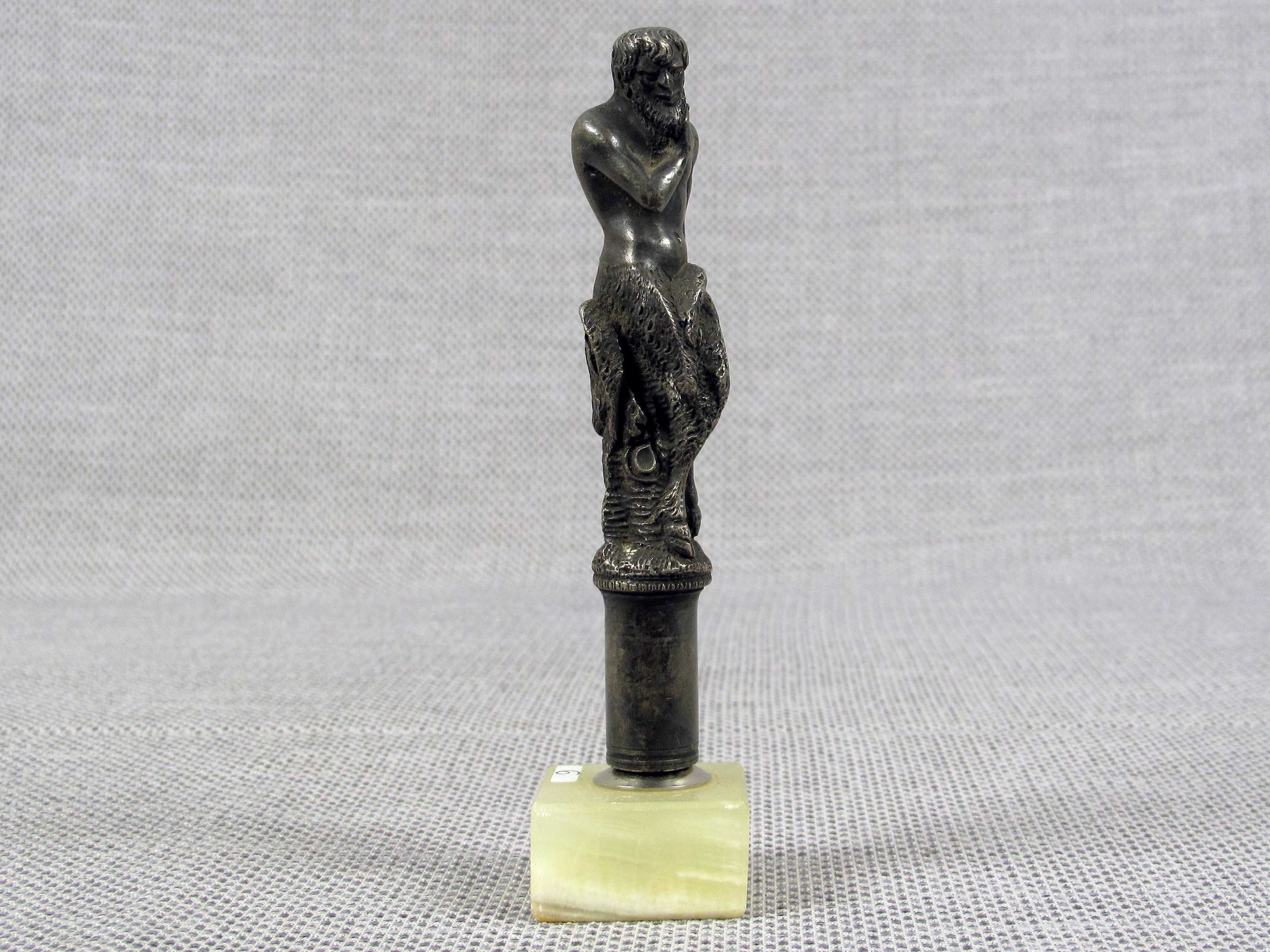 Fauno in metallo argentato (fine XVIII secolo) Applicato su base in marmo Alto 13,8 cm