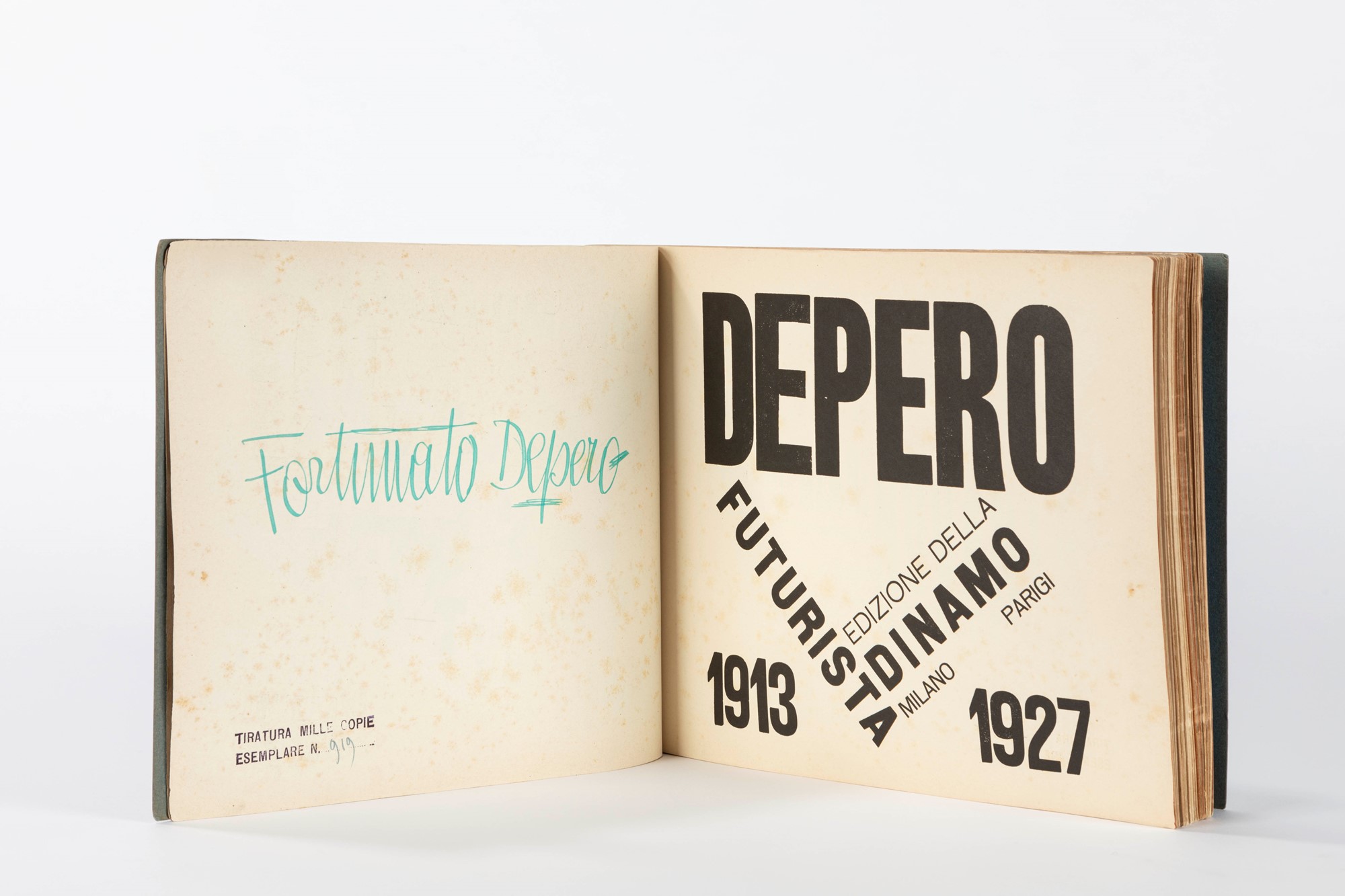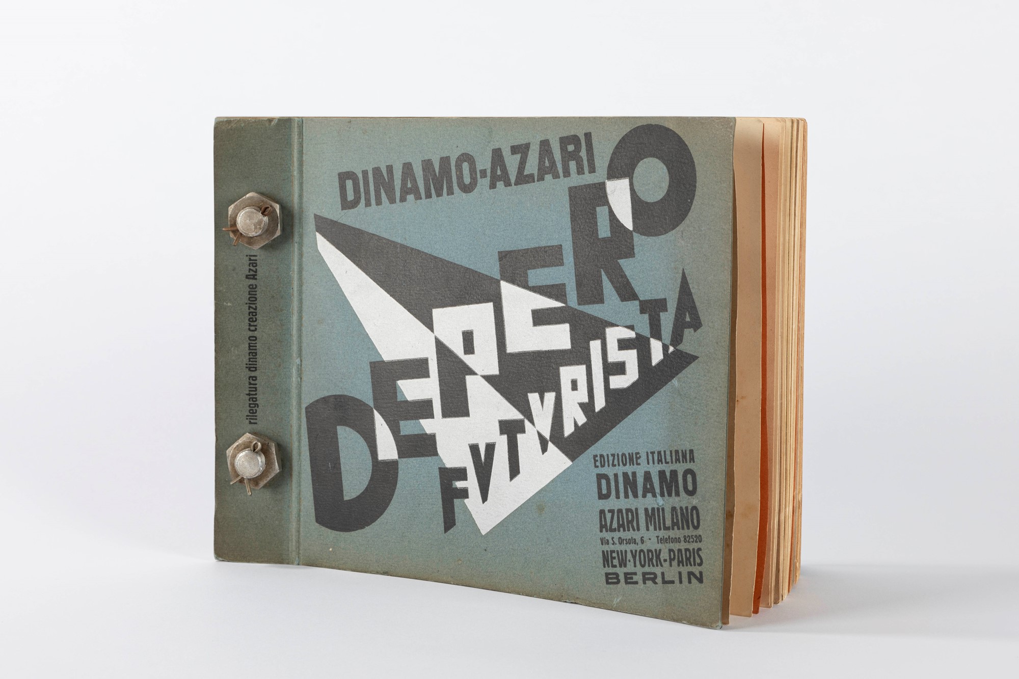 Copia della prima edizione del "Bullonato" di Depero, il libro-oggetto capolavoro del futurismo italiano, un gioiello di inventiva grafica ed editoriale e un vero e proprio libro-feticcio del collezionismo. Copia numerata e firmata dall'Artista al verso del frontespizio.