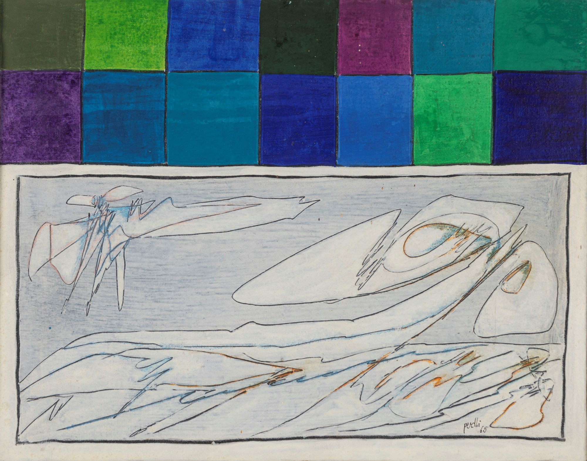 Firmato, datato e titolato al verso: Achille Perilli, 1965, Una storia Movimentata