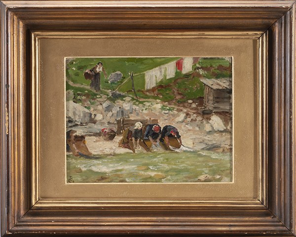Bartolomeo Giuliano "Lavandaie" olio su tela applicata a cartone (cm 21,5x28,5)