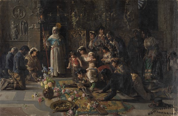 Giacomo Mantegazza "Il bacio del Crocefisso al Venerdì Santo" olio su tela (cm