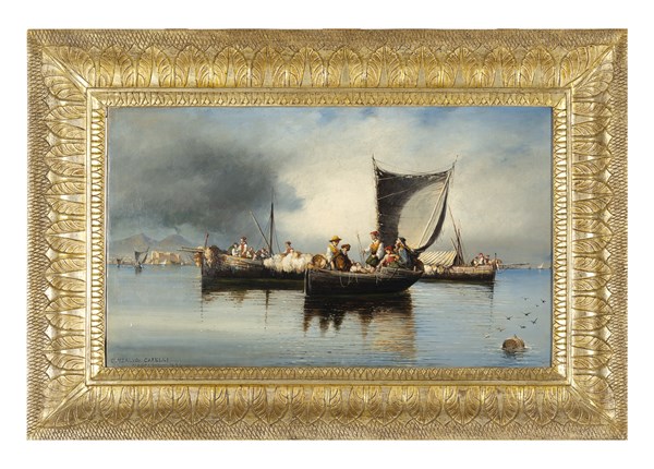 Consalvo Carelli "Pescatori nel Golfo di Napoli" 1888 olio su tela (cm 36x61) Fi