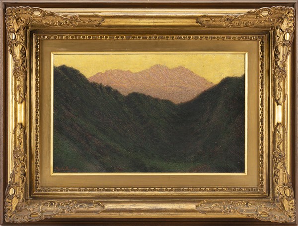 Angelo Morbelli "Alba in montagna" 1907 olio su tela (cm 24x38) Firmato e datato