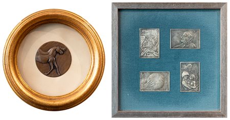 Composizione di 4 rilievi su lastra d'argento tratti da opere di Aligi Sassu, Giuseppe Migneco, Bruno Cassinari e Remo Brindisi