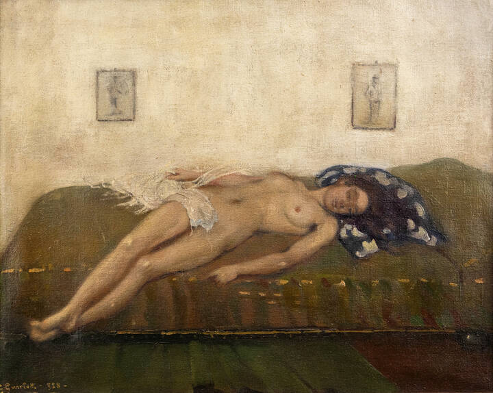 GIOVANNI GUARLOTTI<BR>Galliate (NO) 1869 - 1954 Torino<BR>"Nudo in posa" 1918