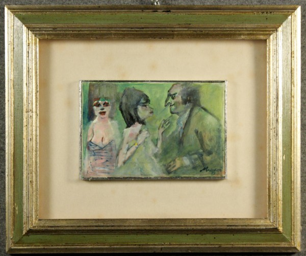 Firmato, datato. MACCARI MINO - Nato a Siena nel 1898. Morto a Roma nel 1989. Dipinto olio su tela raff. ''PERSONAGGI''. Firmato e datato 1989 in basso a destra. In cornice. Mis. Lung. cm. 30 Alt. cm. 19,5 ca.
