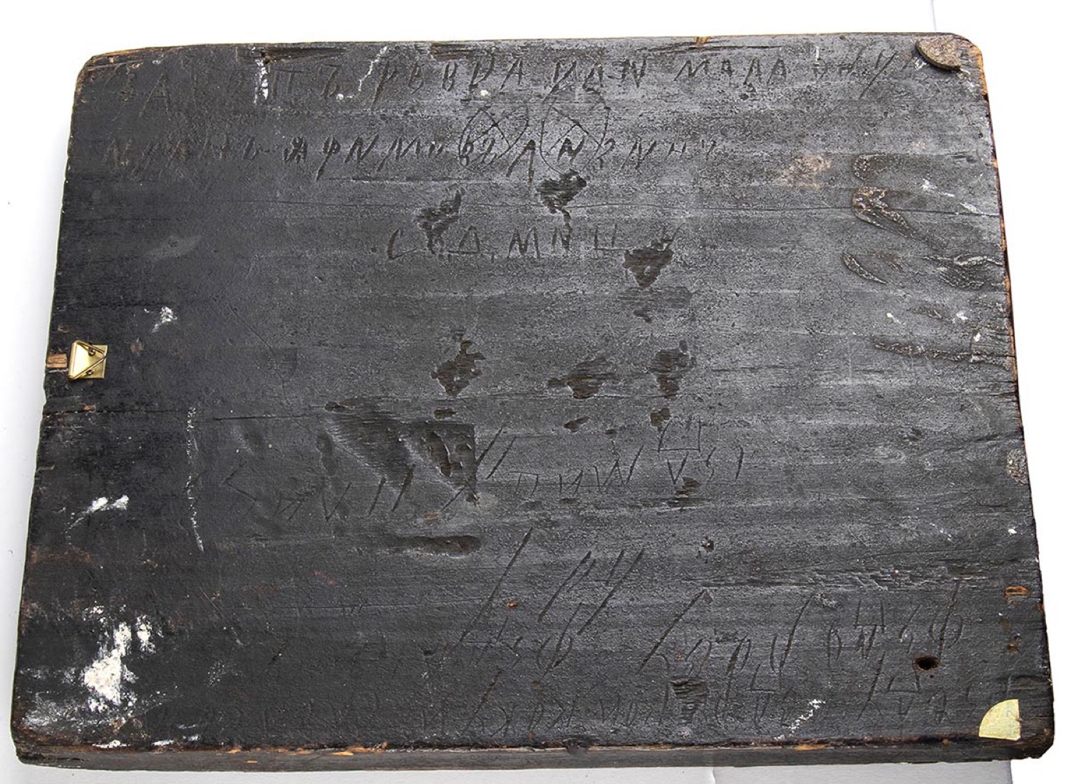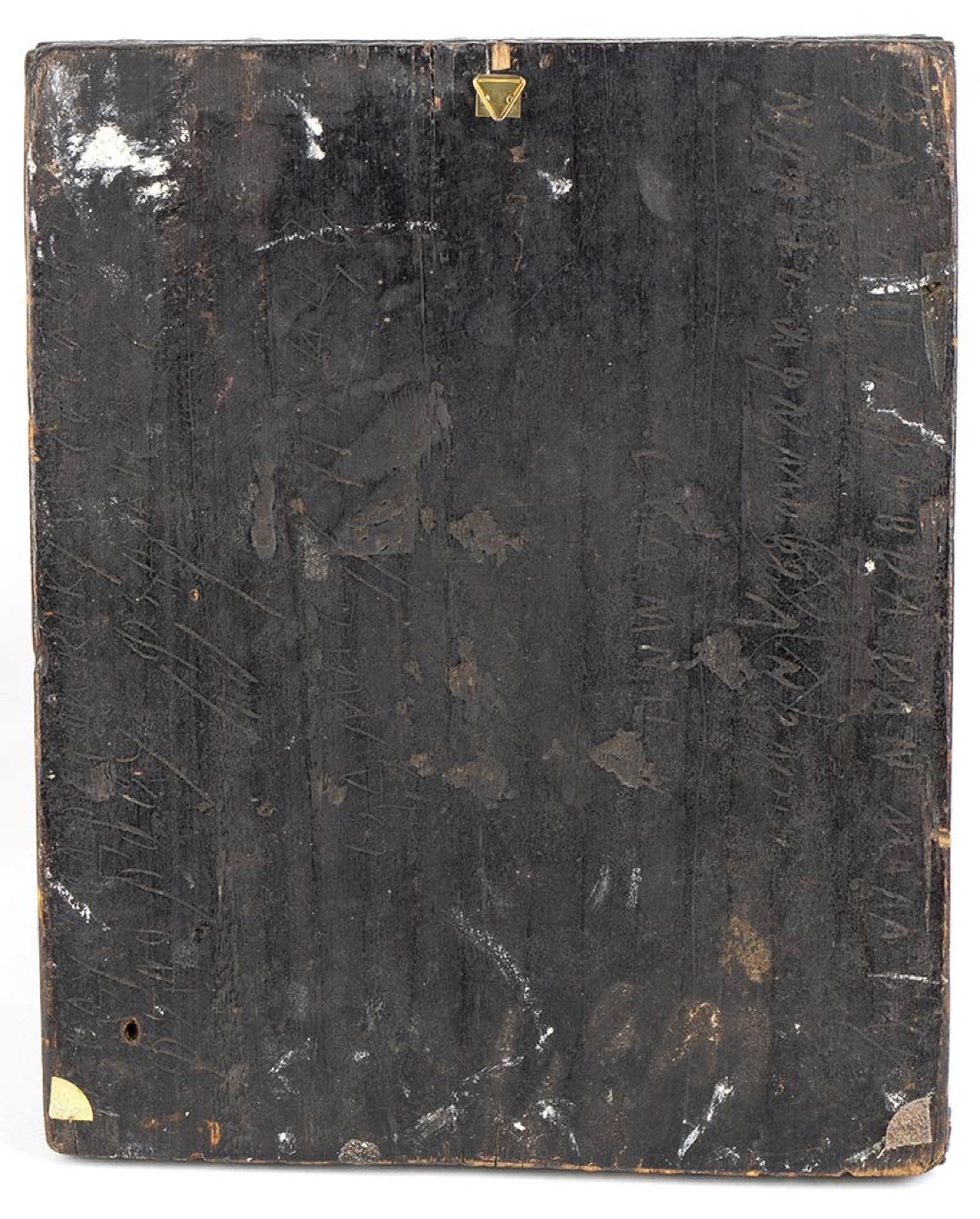 tempera su tavola, raffigurante Cristo in trono con dieci santi. Dimensioni 32 x 16 x 2,5 cm. Stato di conservazione: **** buono.