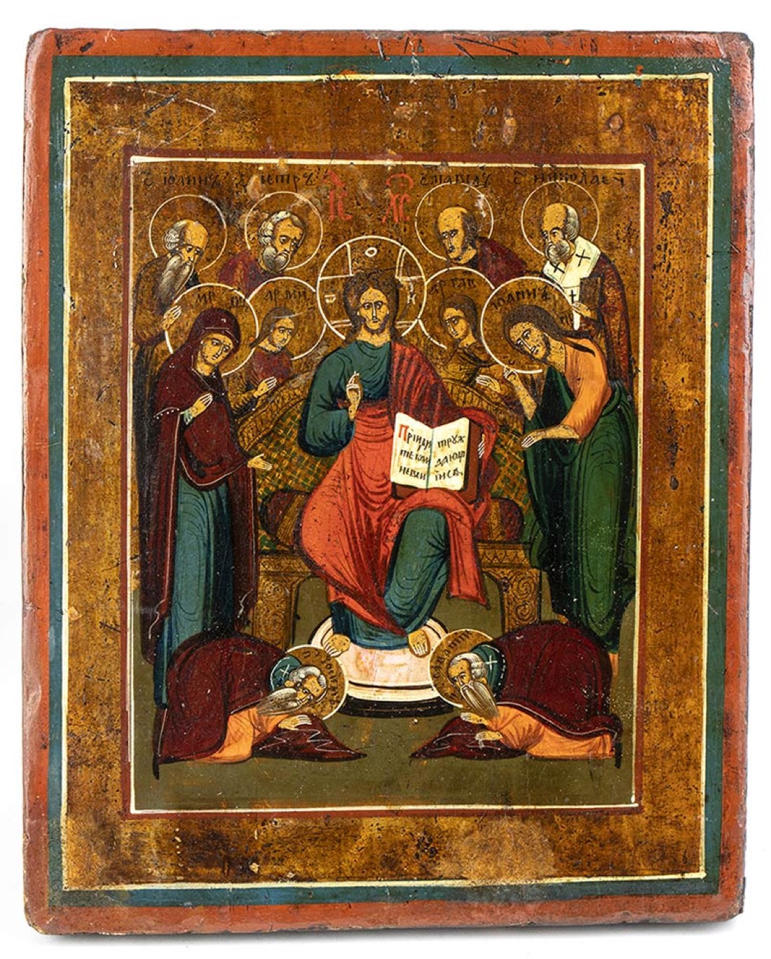 Icona Russa raffigurante Cristo in trono con santi - XIX Secolo