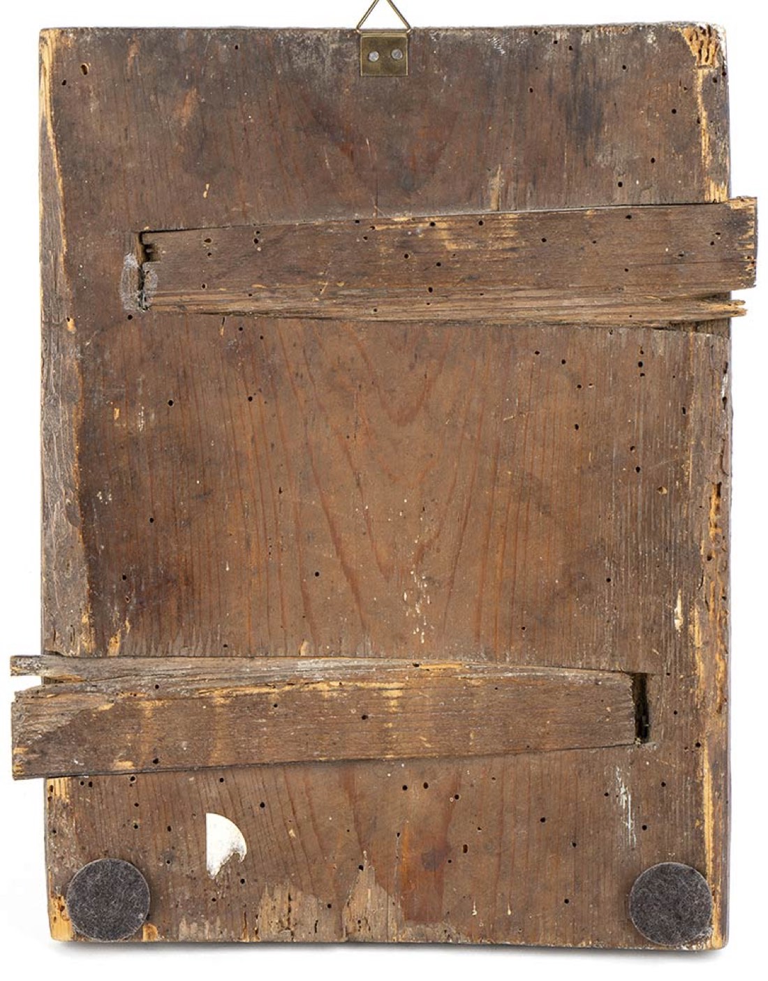 tempera su tavola, raffigurante San Giuseppe con Bambino e santi. Dimensioni 18 x 21,5 x 2 cm. Stato di conservazione: **** buono (difetti).