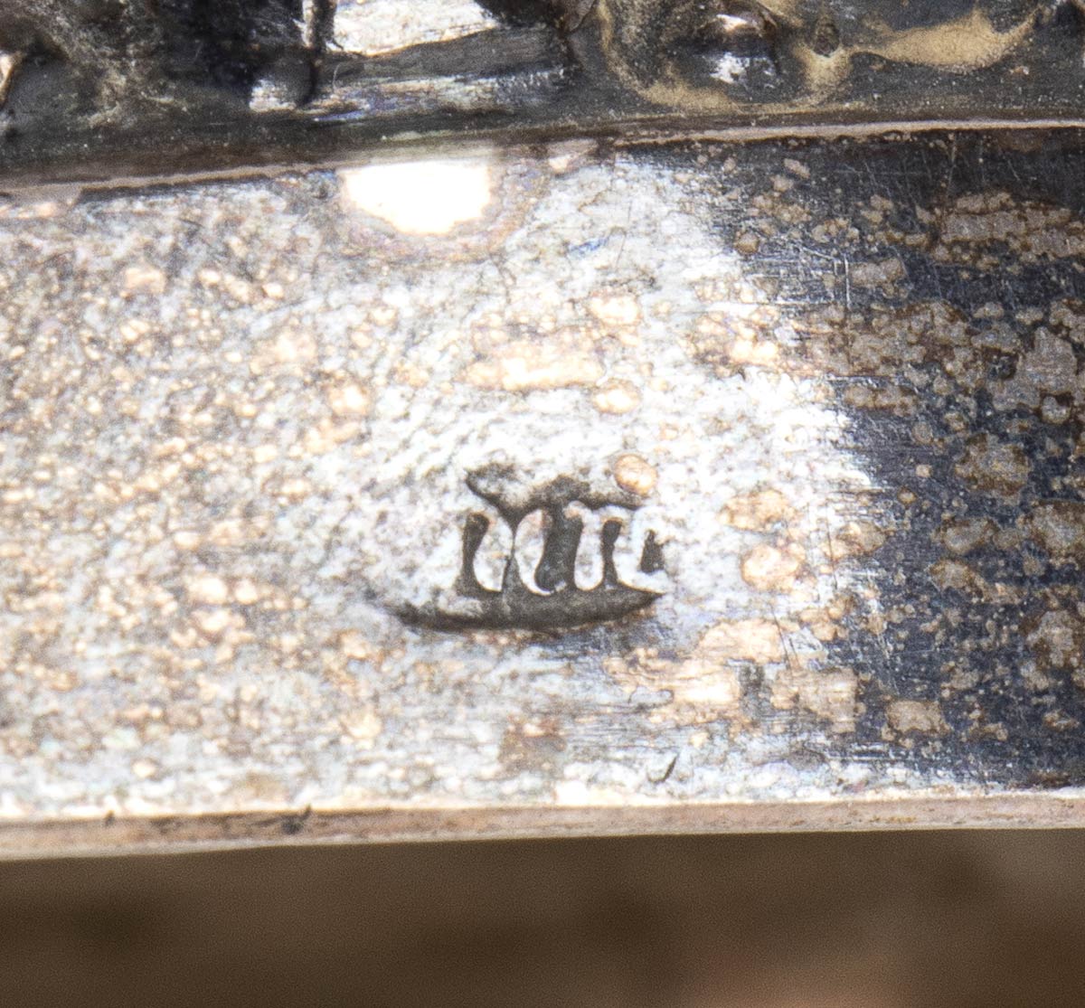 base circolare con decorazione sbalzata a "cocciolette", fusto troncoconico, parte superiore a tre bracci e quattro fiamme, bracci a forma di doppio riccio con foglie d'acanto. Punzonati con il marchio in uso alla corporazione degli orefici di Napoli per l'argento al titolo di 833/1000 o 10 once, 1832-1872, saggiatore Gennaro Mannara, argentiere non identificato.