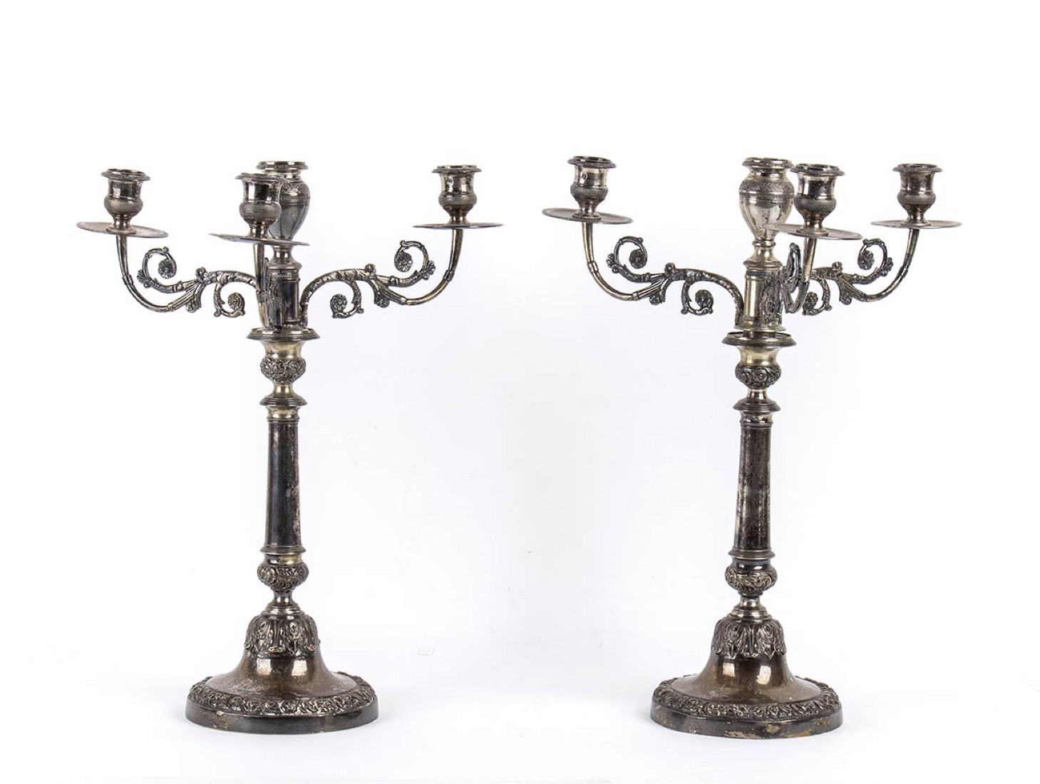 Coppia di candelelabri Italiani in argento - Napoli, 1830 circa